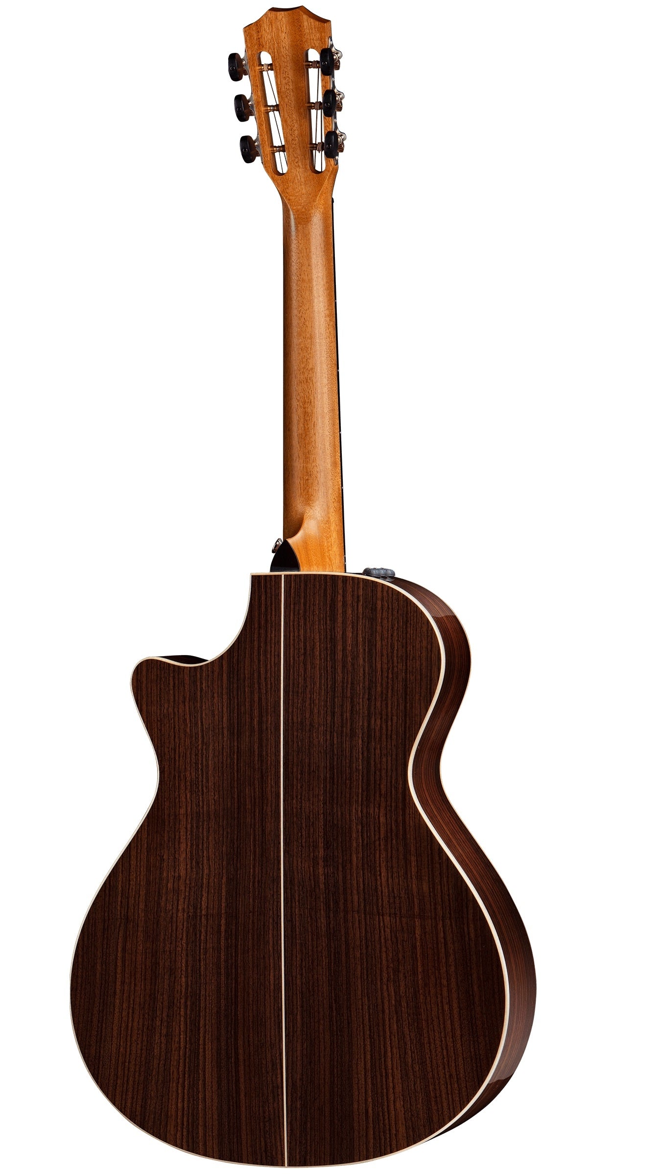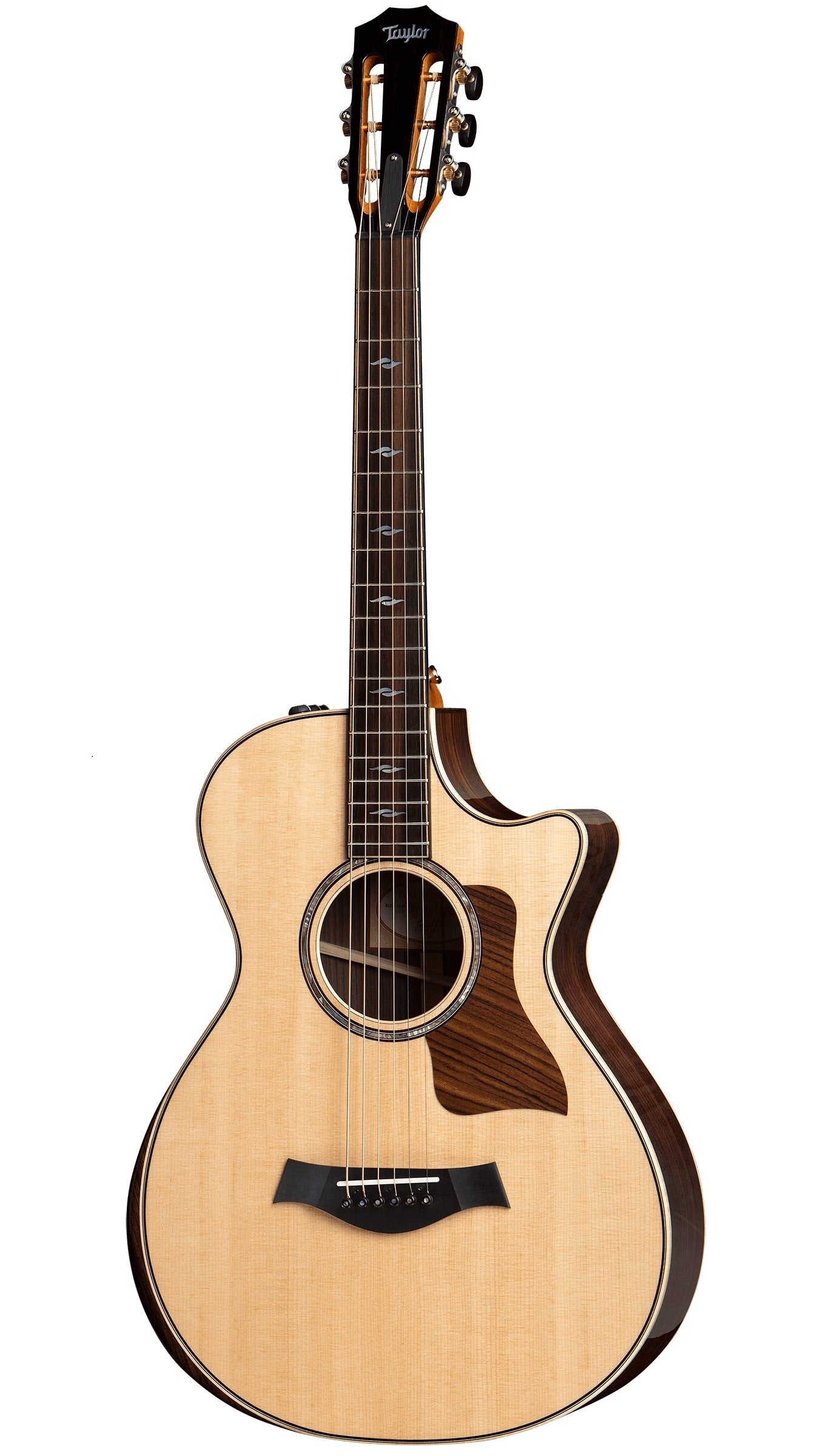 Taylor’s rosewood/spruce Grand Concert is all about articulation and intimacy. It’s a fingerstyle favorite for its balanced and focused response, now enhanced by the tone-boosting power of V-Class bracing. The revoicing of the 800 Series has brought out extra midrange warmth in this body shape, while the addition of our new bracing design adds projection and sustain, making this a surprisingly punchy guitar for its compact, player-friendly size. A Venetian cutaway offers easy access to the upper register, while Taylor Expression System 2 electronics serve up exceptional amplified tone. Premium appointments include maple binding and back strip, rosewood top edge trim, and a rosewood pickguard.