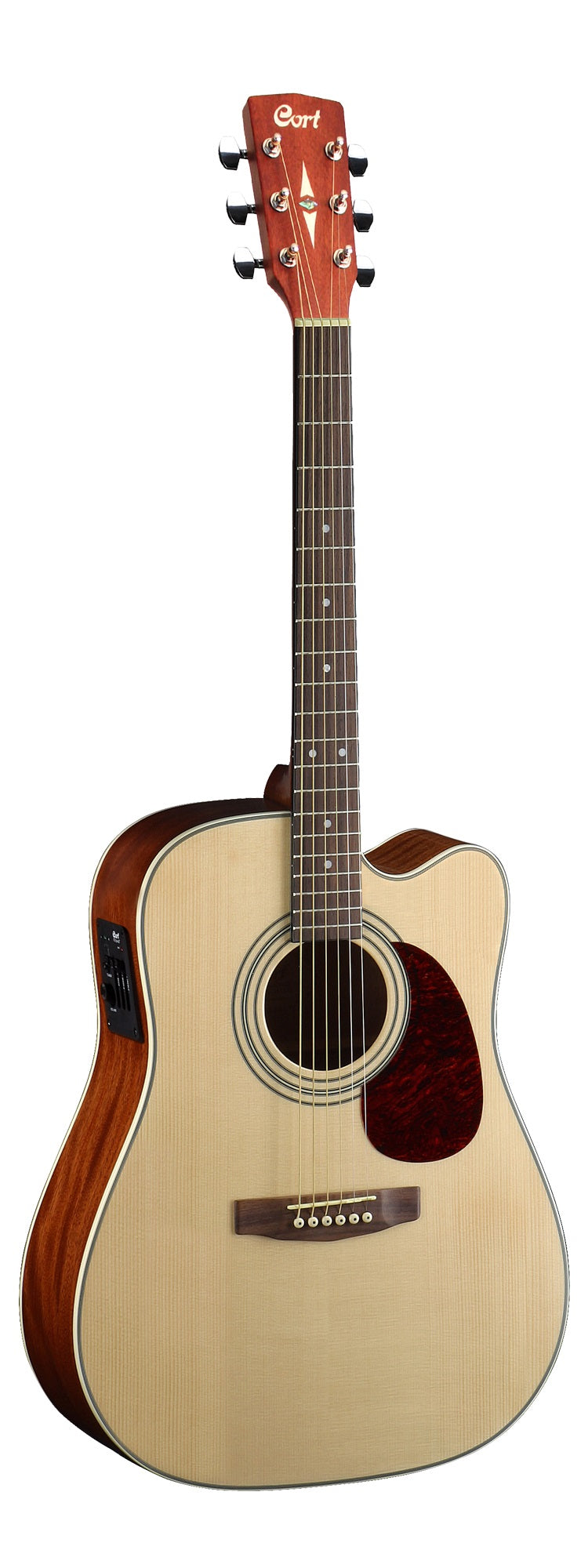 The exclusive scooped surface bridge from Cort enhances sustain with greater string angle from the saddle to the body while reducing tension on the strings across the neck were less finger fatigue and improved playability.