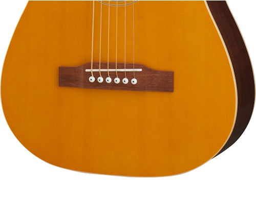 The El Nino Travel Acoustic Outfit offers new players and travelers timeless Epiphone tone in a size that can go anywhere! Featuring a Select Spruce Top, layered Agatis back and sides, a Mahogany neck, Epiphone hardware, and a Granadillo bridge. Gigbag included!