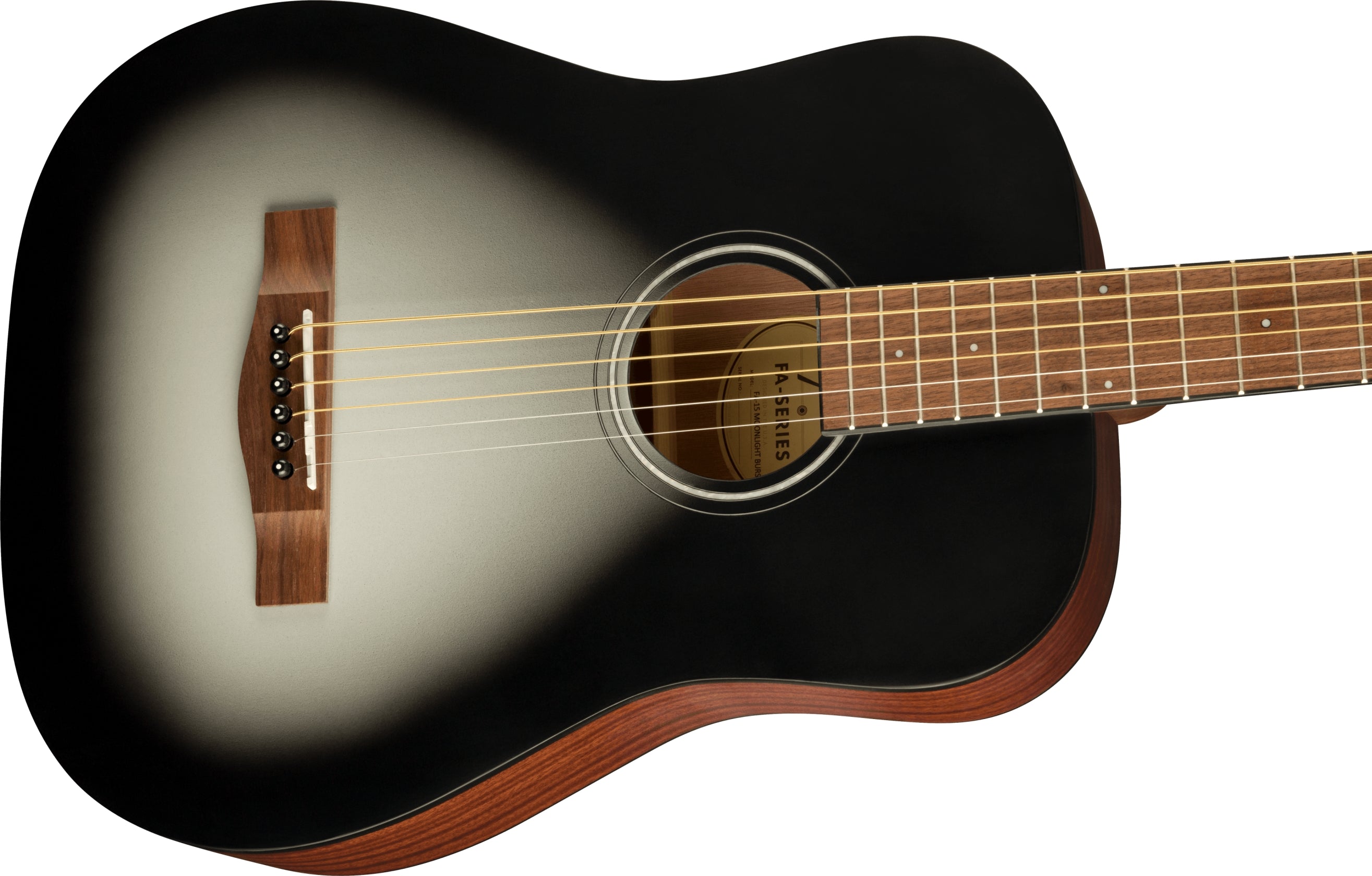 The ¾-size steel-string FA-15 guitar offers a visually stunning instrument at a budget-friendly price. Quality laminate construction with a modern Fender 3+3 headstock creates an instrument that is not only easy to play, but also sounds great. Beginners and developing players will appreciate the style of this guitar, which features a nato neck that gives the guitar a lively tone and feel.