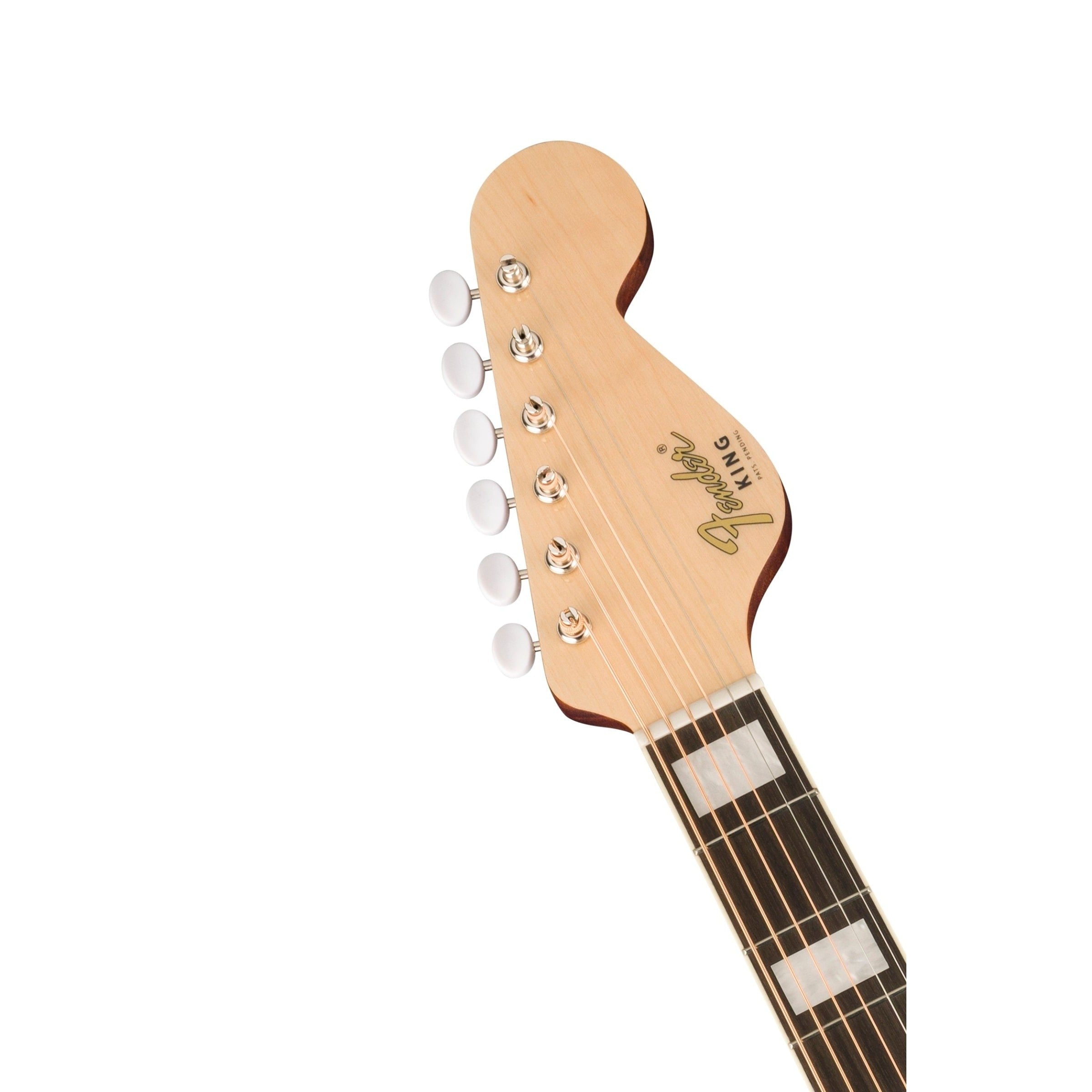 Engineered with an innovative Performance-X™ bracing pattern, the dreadnought body of the Fender California Vintage King is lightly crafted with a solid Sitka spruce top and solid ovangkol back and sides to effortlessly produce a substantial, bass-filled voice with exceptional detail, projection and volume. An ergonomic modern "V" profile was chosen for the okoume neck along with a 25.5" scale length for optimal sustain, and a tilt-back 6-in-line headstock with a maple headcap for a distinctive look born from Fender's electric guitar DNA. Other notable details include a bound ovangkol fingerboard with pearloid block inlays for a throwback look, vintage-style tuning machines for smooth, accurate tuning, and a bone nut and saddle for superior harmonic character. Designed for the performer, the onboard Fishman® Presys VT Plus preamp system features seamless soundhole-mounted controls that blend an undersaddle piezo and internal body transducer to allow faithful and reliable reproduction of the guitar's natural sound when plugged into an amplifier or recording device. A vintage-style hardshell case is included.