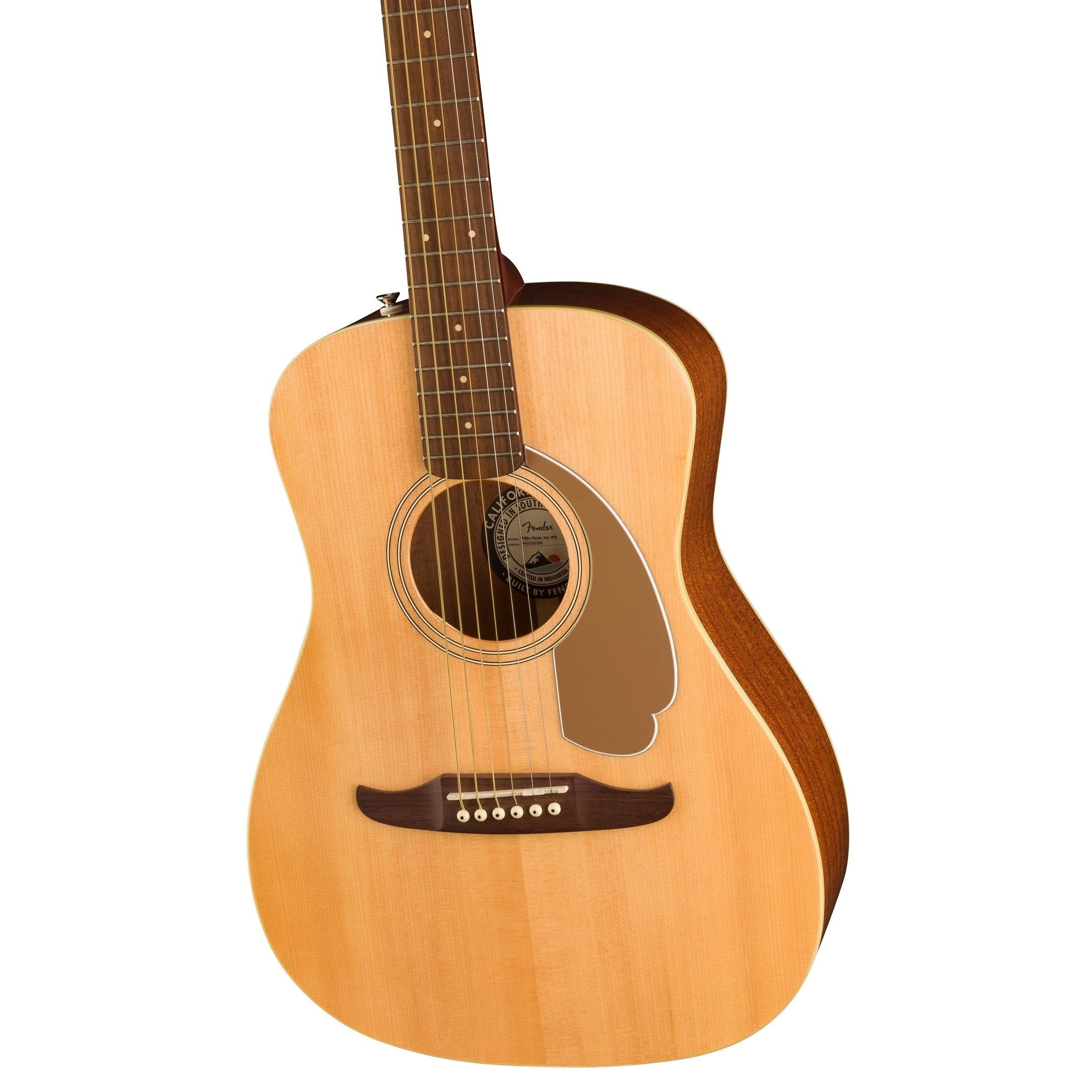 Crafted with an X-braced solid spruce top and sapele back and sides, the compact parlor-sized body of the Malibu Player produces a sweet, articulate voice that encourages players to reach for new chords and melodies. The nato neck is designed with an easy-to-play slim "C"-shaped profile, a short 24" scale length, and a tilt-back 6-in-line headstock for a distinctive look born from Fender's electric guitar DNA. Other notable details include vintage-style tuning machines for smooth, accurate tuning, a GraphTech® NuBone® nut and saddle for detailed harmonic character. With elegantly integrated controls for a sleek, modern look, the onboard Fishman® Flex preamp system allows faithful reproduction of the guitar's natural sound when plugged into an amplifier or recording device.