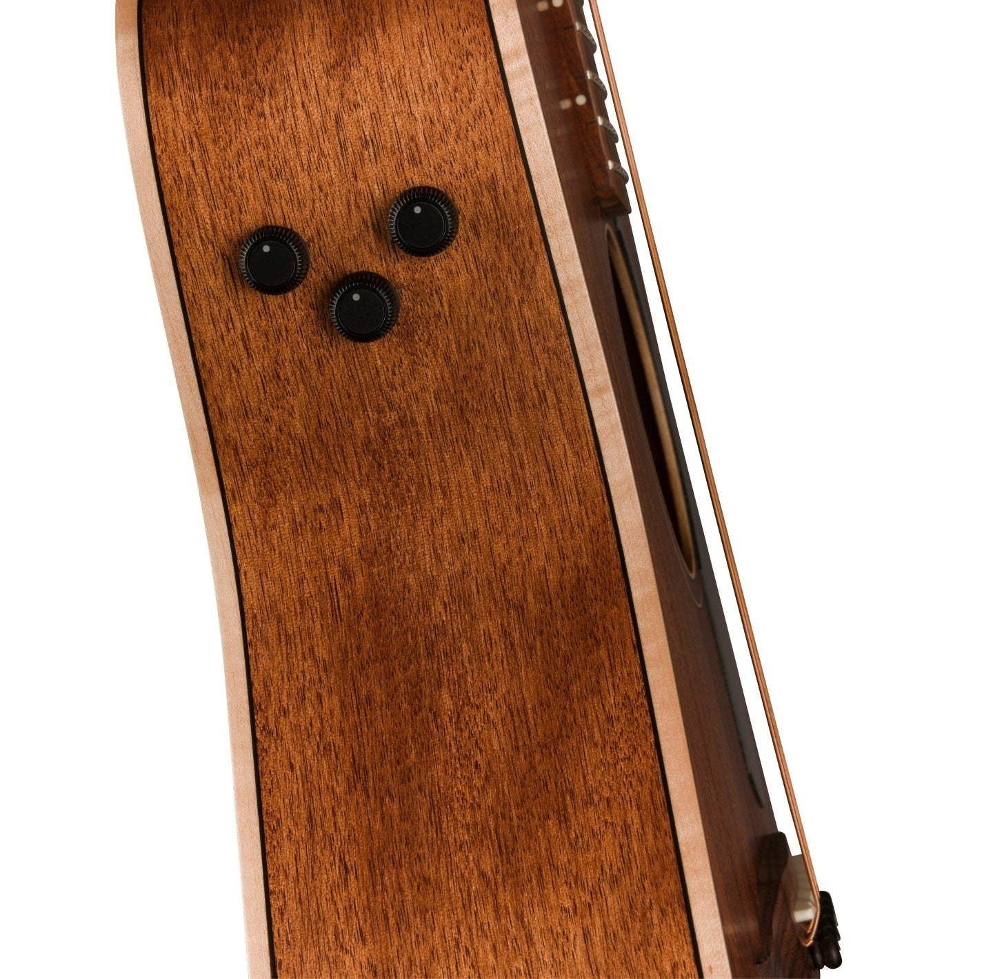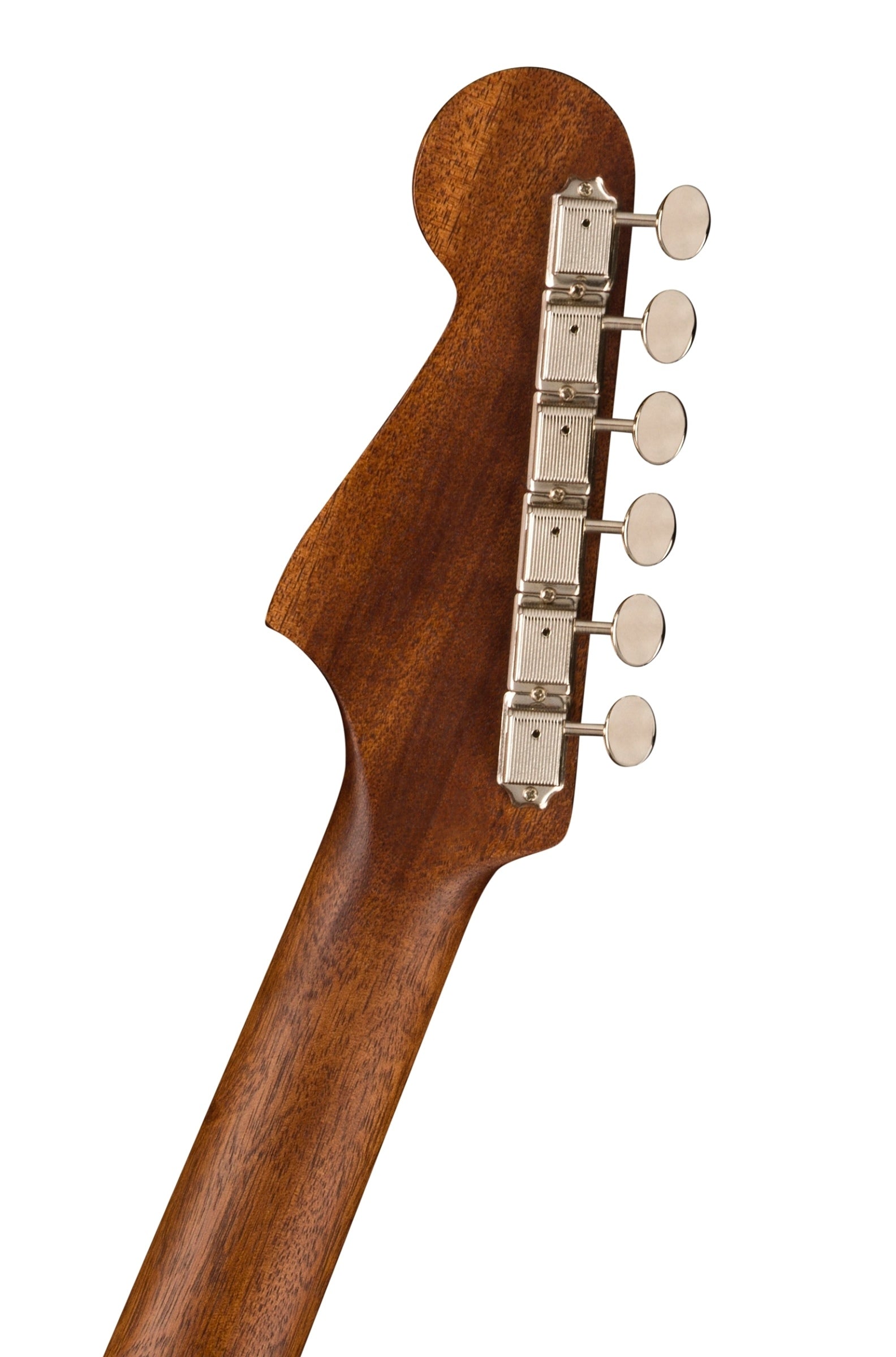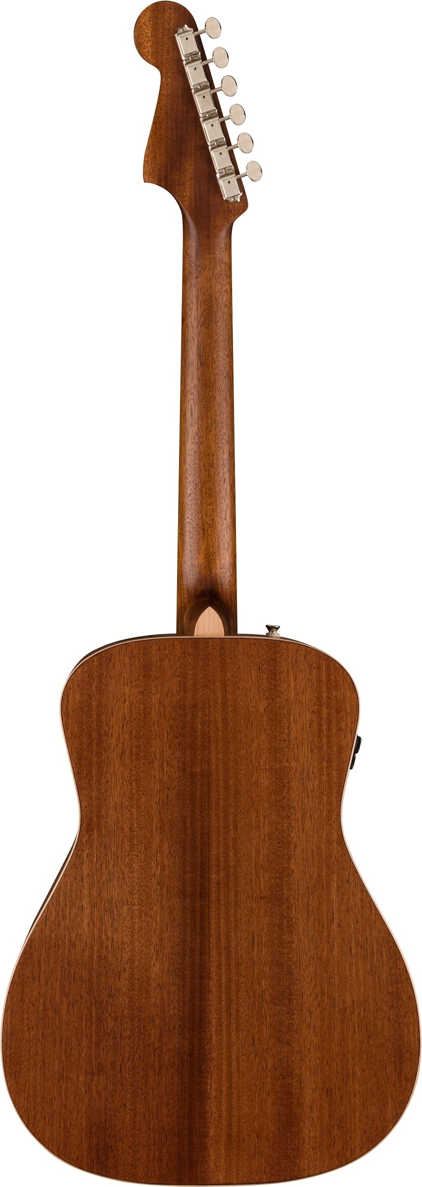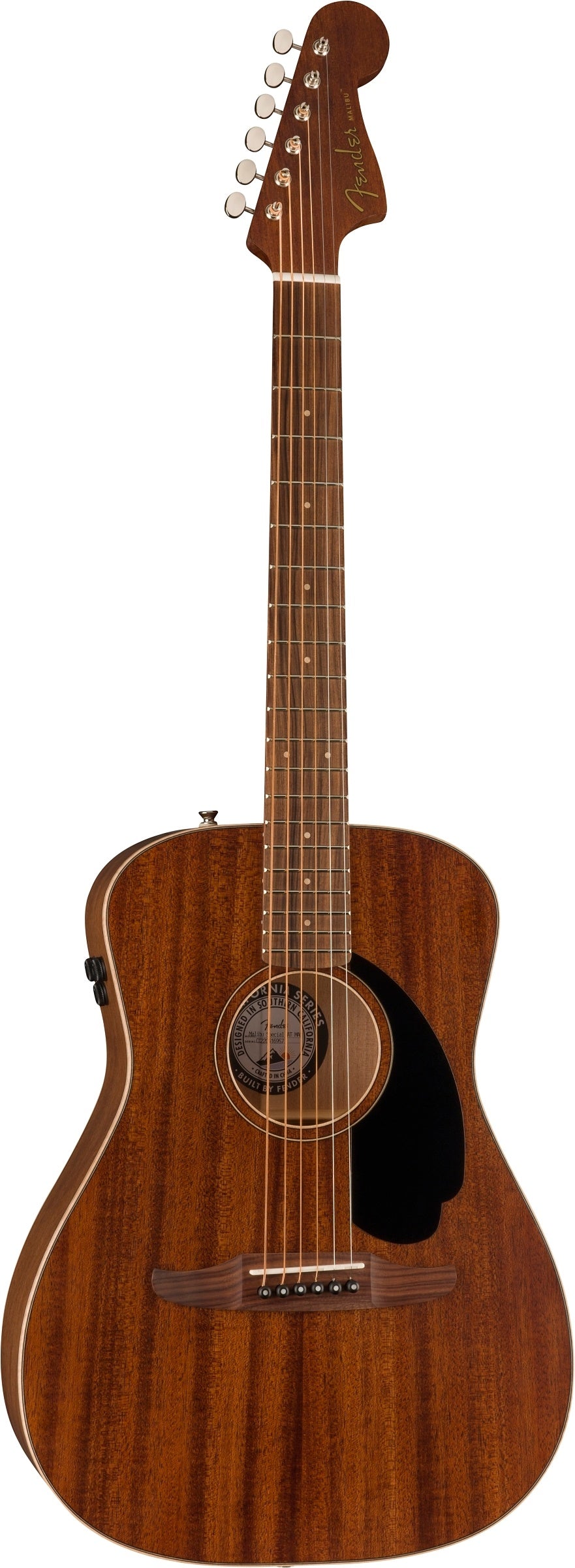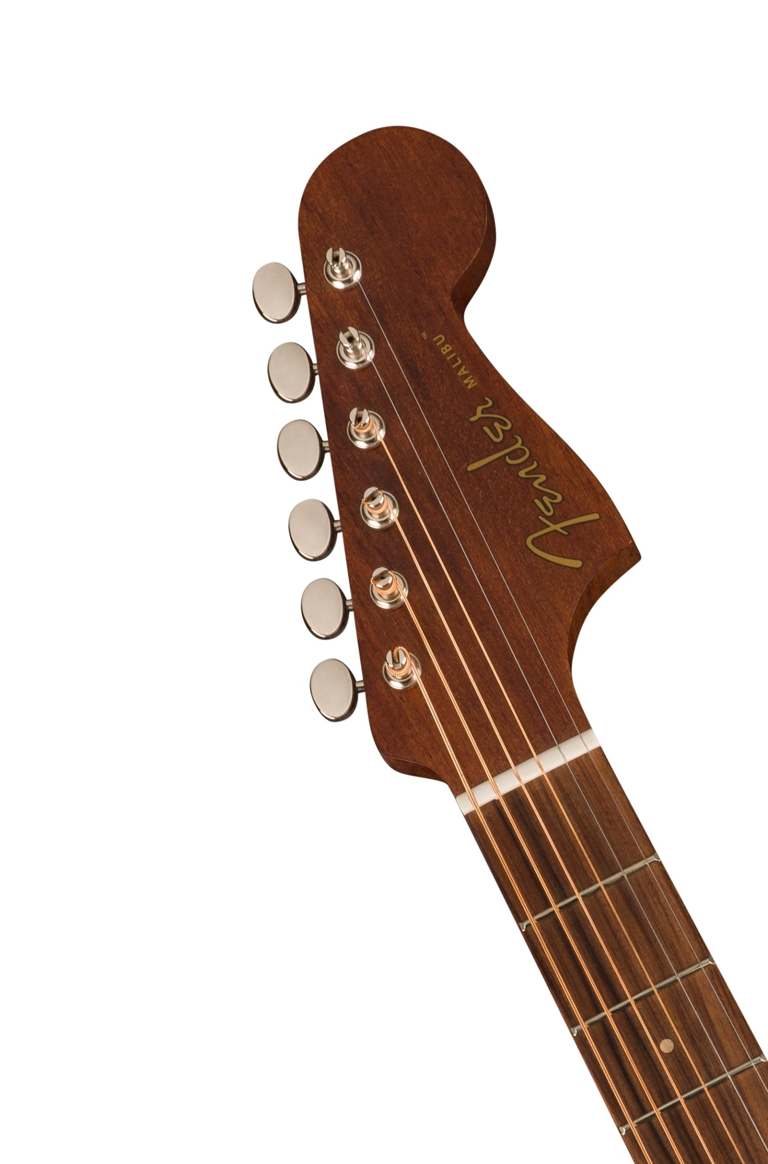 Crafted with an X-braced solid okoume top and solid okoume back and sides, the compact parlor-sized body of the Malibu Special produces a voice that's impressively articulate, punchy, and delicate, while offering superior comfort for hours of creativity. The neck is designed with an easy-to-play slim "C"-shaped profile, a short 24" scale length, and a tilt-back 6-in-line headstock for a distinctive look born from Fender's electric guitar DNA. Other notable details include vintage-style tuning machines for smooth, accurate tuning, a maple rosette and body binding for an upscale look, and a bone nut and saddle for rich harmonic character. Designed for the performer, the Fishman® Flex Body preamp system blends an undersaddle piezo and internal body transducer to allow faithful and reliable reproduction of the guitar's natural sound when plugged into an amplifier, PA system or recording device.