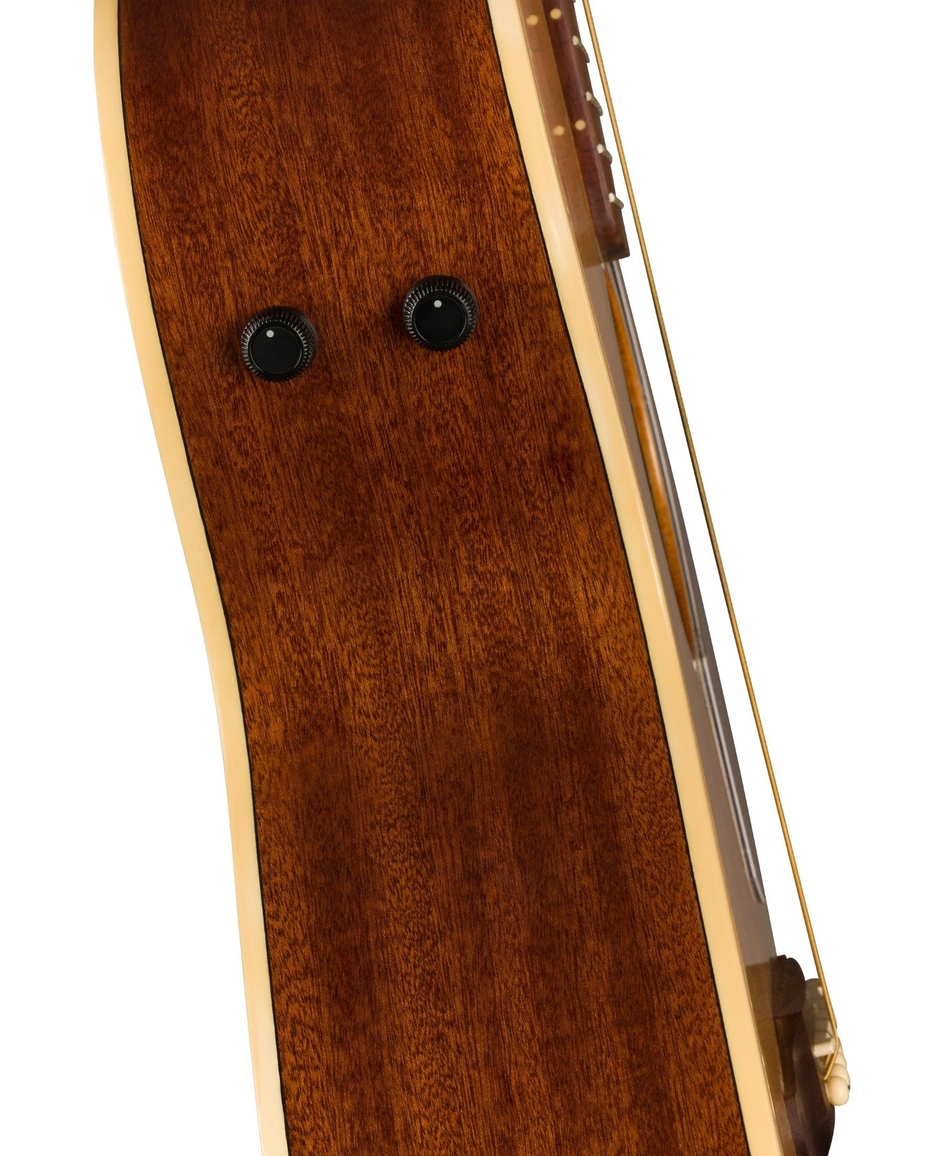 Crafted with an X-braced solid spruce top and sapele back and sides, the approachable mid-size auditorium body of the Newporter Player produces a versatile voice that's both articulate and powerful, while offering a comfortable feel for hours of inspiration. The nato neck is designed with an easy-to-play slim-taper "C"-shaped profile, a 25.5" scale length, and a tilt-back 6-in-line headstock for a distinctive look born from Fender's electric guitar DNA. Other notable details include vintage-style tuning machines for smooth, accurate tuning, a GraphTech® NuBone® nut and saddle for detailed harmonic character. With elegantly integrated controls for a sleek, modern look, the onboard Fishman® Flex preamp system allows faithful reproduction of the guitar's natural sound when plugged into an amplifier or recording device.