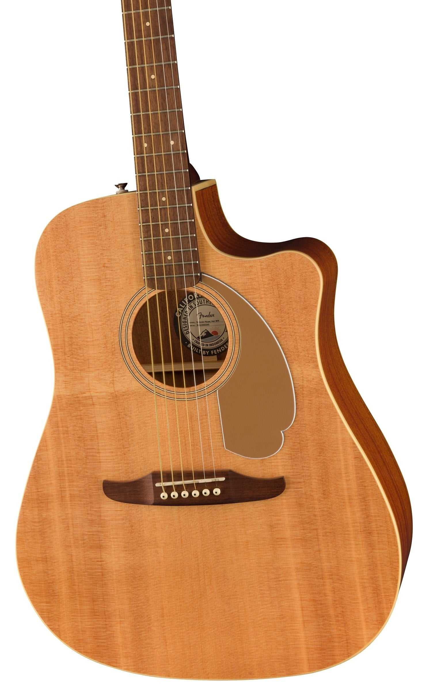 Crafted with an X-braced solid spruce top and sapele back and sides, the dreadnought body of the Redondo Player produces a deep, robust voice with exceptional projection and volume for a wide variety of musical settings. The nato neck is designed with an easy-to-play slim "C"-shaped profile, a 25.5" scale length, and a tilt-back 6-in-line headstock for a distinctive look born from Fender's electric guitar DNA. Other notable details include vintage-style tuning machines for smooth, accurate tuning, a GraphTech® NuBone® nut and saddle for detailed harmonic character. With elegantly integrated controls for a sleek, modern look, the onboard Fishman® Flex preamp system allows faithful reproduction of the guitar's natural sound when plugged into an amplifier or recording device.