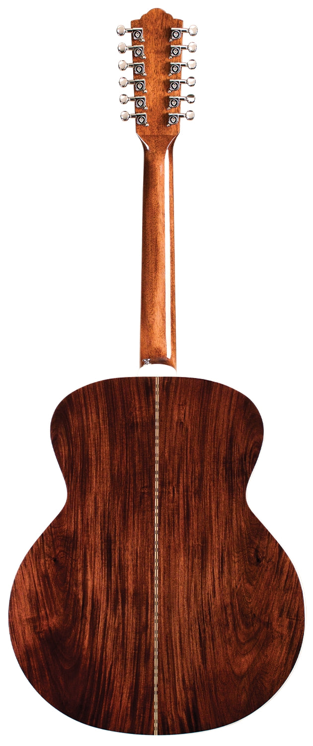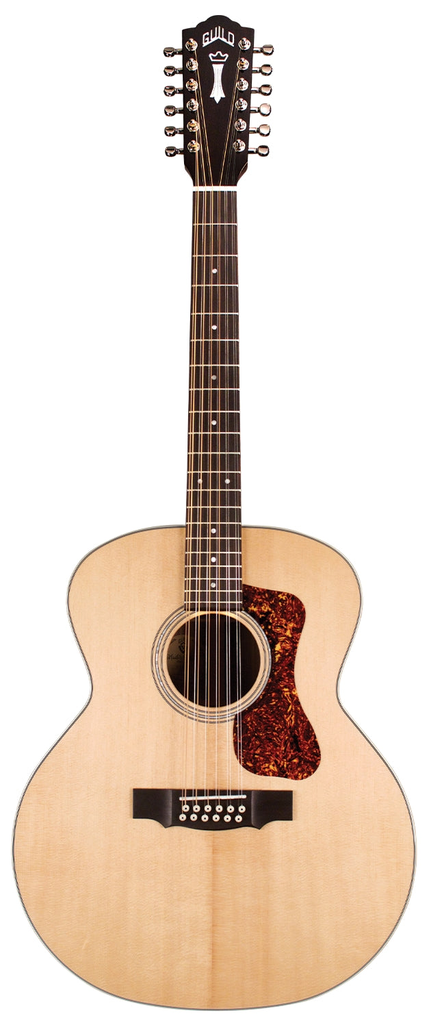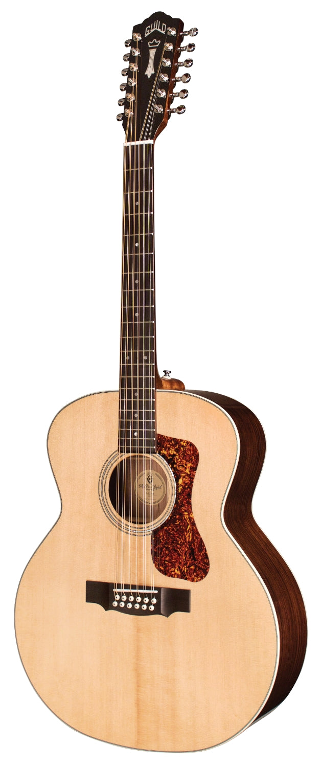 The F-1512 Natural combines two of Guild’s most iconic specialties: twelve string and jumbo guitars. With their large, rounded bodies, jumbo acoustic guitars have been Guild’s forte since 1954; combining this shape with the ever-popular 12-string construction results in a full-toned, impressively voiced acoustic instrument. Built with a solid Sitka spruce top and solid rosewood back and sides, the F-1512 Natural also features a Rosewood fingerboard and bridge, bone nut and saddle, and mother-of-pearl rosette. This model also has a 1 7/8” nut width on a vintage shaped Guild neck, iconic Chesterfield headstock emblem reminiscent of 1960s Guilds, period-correct tortoiseshell pickguard, and Guild’s new premium acoustic gig bag. Comes in Natural gloss finish.