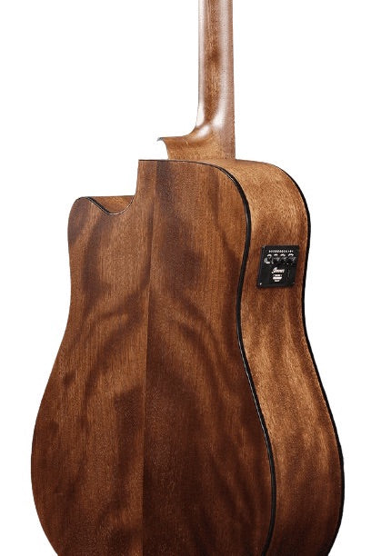 SPEC body shape Cutaway Dreadnought body top Solid Mahogany top back & sides Mahogany back & sides bracing X Bracing neck Mahogany neck fretboard Ovangkol bridge Ovangkol tuning machine Chrome Die-cast tuners number of frets 20 bridge pins Ibanez Advantage™ bridge pins strings D'Addario® EXP™ strings pickup Fishman® Sonicore pickup preamp Ibanez AEQ-SP2 preamp w/Onboard tuner output jack Balanced XLR & 1/4" outputs battery 9V Battery finish top Open Pore finish back and sides Open Pore finish neck back Open Pore NECK DIMENSIONS Scale : 651mm a : Width 48mm at NUT b : Width 60mm at 14F c : Thickness 22mm at 1F d : Thickness 23mm at 7F Radius : 400mmR BODY DIMENSIONS a : Length 20" b : Width 15 3/4" c : Max Depth 5"
