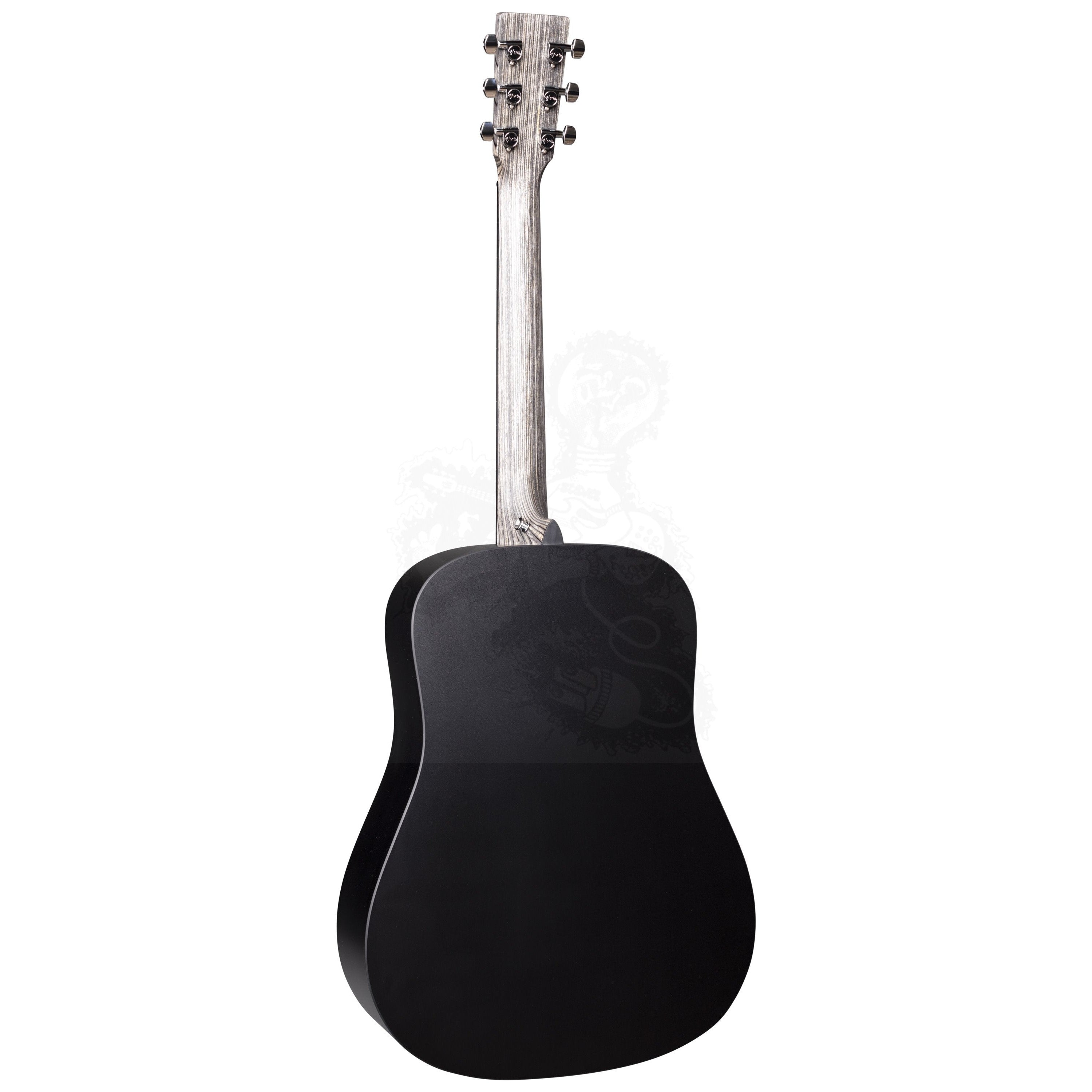 In the early 1970s, Martin Guitar was commissioned to design an all-black lacquered D-35 for country star Johnny Cash. Though Martin had never considered such a request before, an all-black D-35 for the “Man in Black” was custom-made. Cash went on to play his custom D-35 on stage for the next 20 years. In 2006, Martin released a commemorative D-35 Johnny Cash edition. New for 2019, the DX Johnny Cash is a nod to the history between Cash and Martin Guitar. Designed in collaboration with John Carter Cash and the Cash Foundation management team, the guitar features a classic Dreadnought body shape constructed with Jett black high-pressure laminate (HPL) top, back and sides. Like the earlier commemorative edition, this instrument includes a custom fingerboard inlaid with stars and the “CASH” logo. Johnny Cash’s signature appears on the rosette and label. This model comes with Fishman® MX electronics and a soft gig bag embroidered with the “CASH” logo and is strung with Martin’s Authentic Acoustic Lifespan® 2.0 strings. The DX Johnny Cash was designed to be an accessible and playable guitar for anyone looking to honor the legacy of the legendary musician. Body Size:D-14 Fret Finish Top:None Construction:Mortise & Tenon Neck Joint Back & Side Finish:None Bracing Pattern:X-Brace Scale Length:25.4" Brace Shape:Scalloped Fingerboard Width At Nut:1 3/4'' Top Material:HPL Neck Shape:Performing Artist Back Material:HPL Neck Taper:High-Performance Taper Side Material:HPL Electronics:Fishman MX Recommended Strings:Authentic Acoustic Lifespan® 2.0 Light - 92/8 Phosphor Bronze MA540T Top Top Color:None Bridge Style:Modern Belly - Drop in Saddle Binding:None Bridge String Spacing:2 5/32" Top Inlay Material:None Bridge Material:FSC® Certified Richlite® Top Detail:Jett Black Bridge Pin Material:Black Plastic Pickguard:Black Bridge Pin Dots:White Plastic Pickguard Inlay:None Saddle:Compensated Black Tusq Rosette:Custom Ink Saddle Radius:16" Body Brace Material:Sitka Spruce Back & Sides Color:None Brace Size:5/16" Back Detail:Jett Black Back Purfling/Strip:None Back Inlay Material:None Heelcap:Black Side Detail:Jett Black Endpiece:None Side Inlay Material:None Endpiece Inlay:None Neck Neck Material:Black Birch Laminate Fingerboard Material:FSC® Certified Richlite® Finish Neck:Hand-Rubbed Fingerboard Width at 12th Fret:2 1/8'' Neck Color:None Fingerboard Inlay Style:Inlaid Stars and CASH Custom Ink Number of Frets Total:20 Fingerboard Inlay Material:White Plastic and Custom Ink Neck Joins Body At:14th Fret Fingerboard Binding Material:None Side Dots:White Headstock Headstock Shape:Solid with Standard Taper Tuning Machines:Chrome Enclosed Gear Headplate Material:HPL Knob:Small Headplate Logo Style:Silver Script Ink Nut Material:Black Corian Headplate Binding Material:None Misc Case:Soft Gig Bag Left Handed Availability:Yes Label:Paper Label Pleked:No