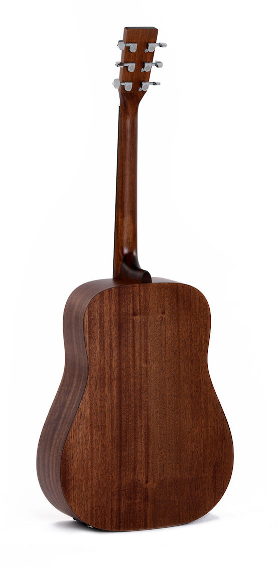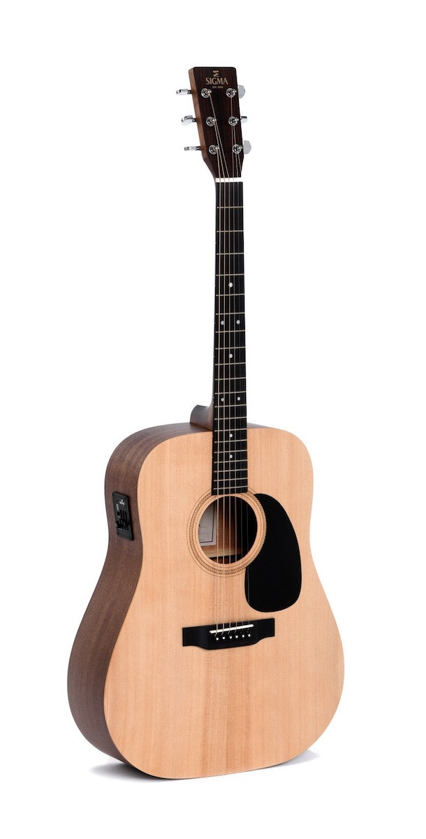 The Sigma DME+ dreadnought acoustic guitar features a solid sitka spruce top and mahogany back and sides. A bone nut and saddle adds to the quality components used. The Sigma Guitar range of acoustics are superbly built instruments delivering excellent tone and unbelievable value for money.