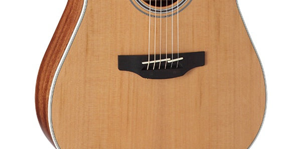 For players looking for a different sound, the GD20CE-NS combines a solid cedar top with mahogany back and sides to produce a warm, detailed tone that works beautifully for a wide range of musical styles. The slim satin-finish mahogany neck and 12”-radius ovangkol fingerboard provide great feel and playability, while the onboard Takamine TP-4TD preamp system gives you a built-in tuner with three-band EQ and gain controls for excellent amplified performance and versatility.