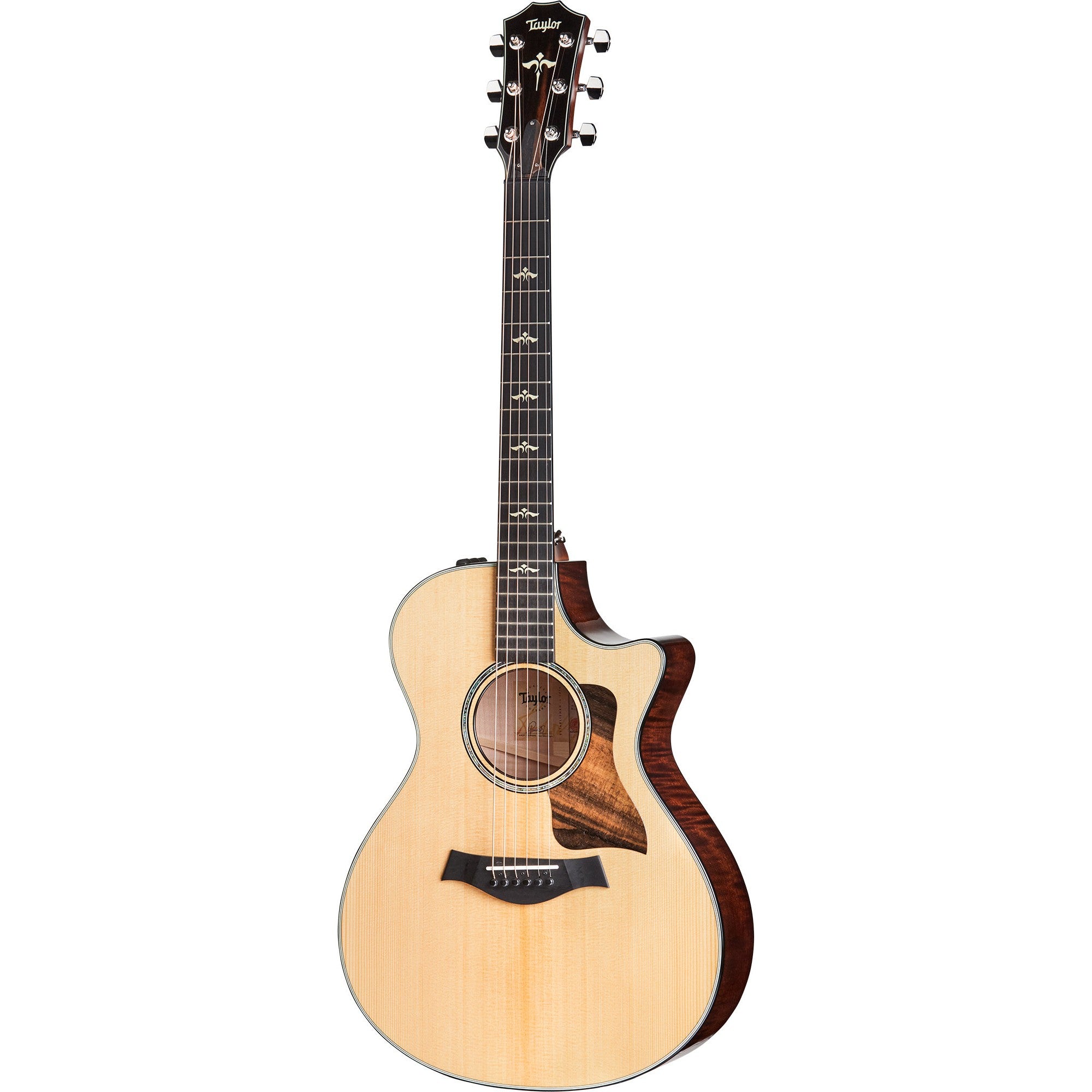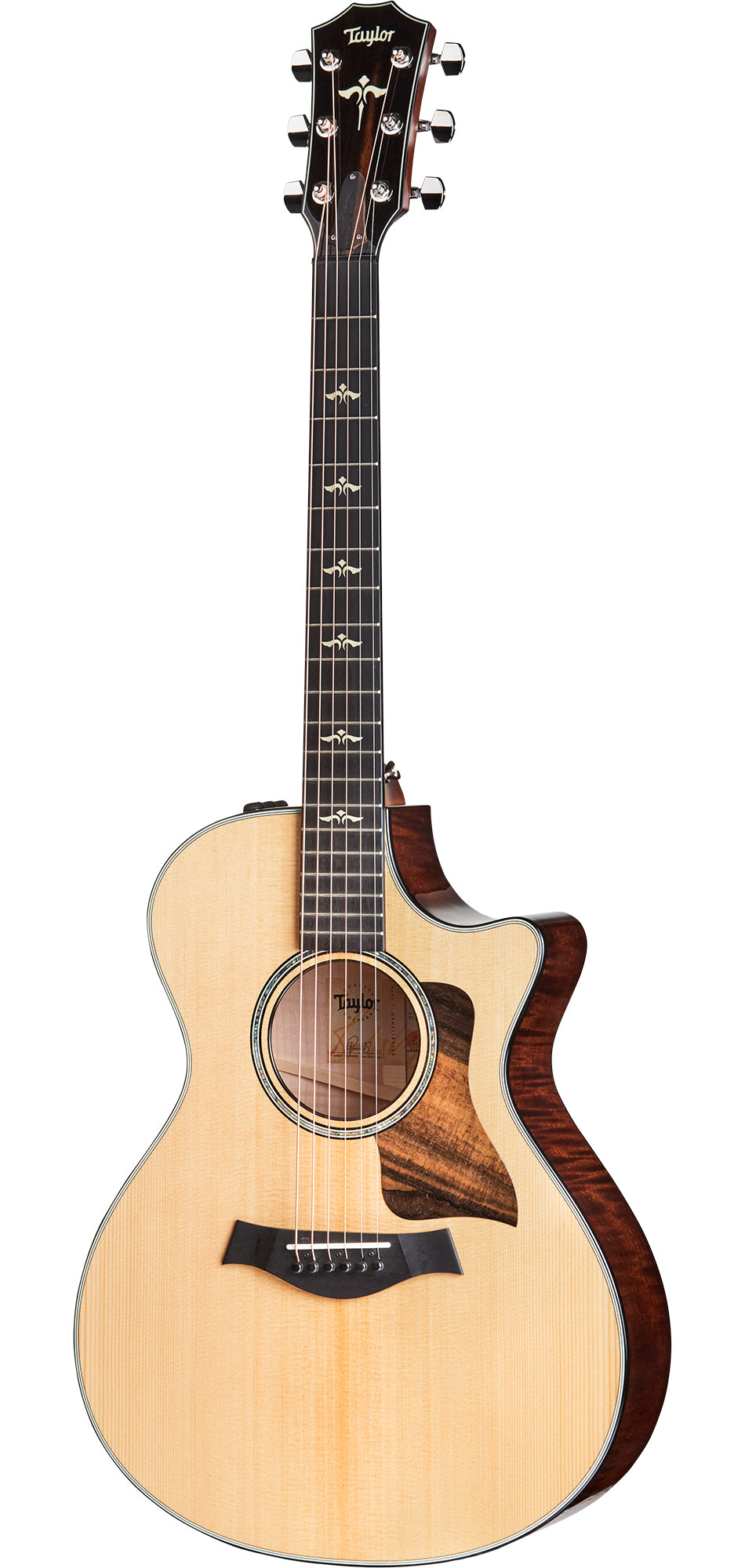 Our cutaway maple/spruce Grand Concert has been revoiced to be richer, warmer and more complex, adding extra depth to the Grand Concert body’s natural clarity and top-end chime. Tone-enhancing strokes include a new back bracing profile, a torrefied (specially roasted) top that yields wonderfully aged tonal character, protein glues that optimize the tonal transfer, and an ultra-thin, 3.5-mil gloss finish to enhance the acoustic resonance. Together with a hand-friendly short-scale neck, the 612ce sounds and plays like a dream. A hand-rubbed “Brown Sugar” stain on the back and sides gives maple’s striking figure a beautiful violin-hued appearance. Featured appointments include new grained ivoroid Wings fretboard inlays, an inlaid ebony backstrap, ebony binding with grained ivoroid purfling, an ebony/grained ivoroid rosette, and a striped ebony pickguard, with Taylor’s stage-ready Expression System® 2 pickup onboard.