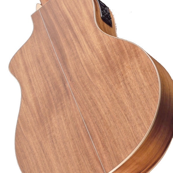 The flagship offering in the Bella Tono series is the SC56S Allure; pulling out all the stops and ticking off all the boxes. This model features a solid Spruce top, gorgeous Acacia back & sides and cutaway body design for easy access to the upper frets. The soundboard is adorned with stunning abalone for both the rosette and purfling and is bound in maple. The ebony fingerboard continues with the lush appointments; depicting a beach island scene of a palm tree and birds in flight which are inlaid in exquisite abalone and turquoise. The Washburn Studio body design makes for an incredibly comfortable playing experience while managing to maintain the tight lows, focused mids and clear highs commonly associated with larger body sizes. The solid Spruce top helps define sonic nuances throughout the entire register of the instrument and showcases Washburn’s Comfort Arm Rest. Its full 25.5″ scale length extends an undeniable familiarity to the player and the satin finished, modern “C” profile of the Mahogany neck is smooth and cozy feeling in the hands. For live performance or in the studio, it comes equipped with a Barcus Berry LX4 pickup system.