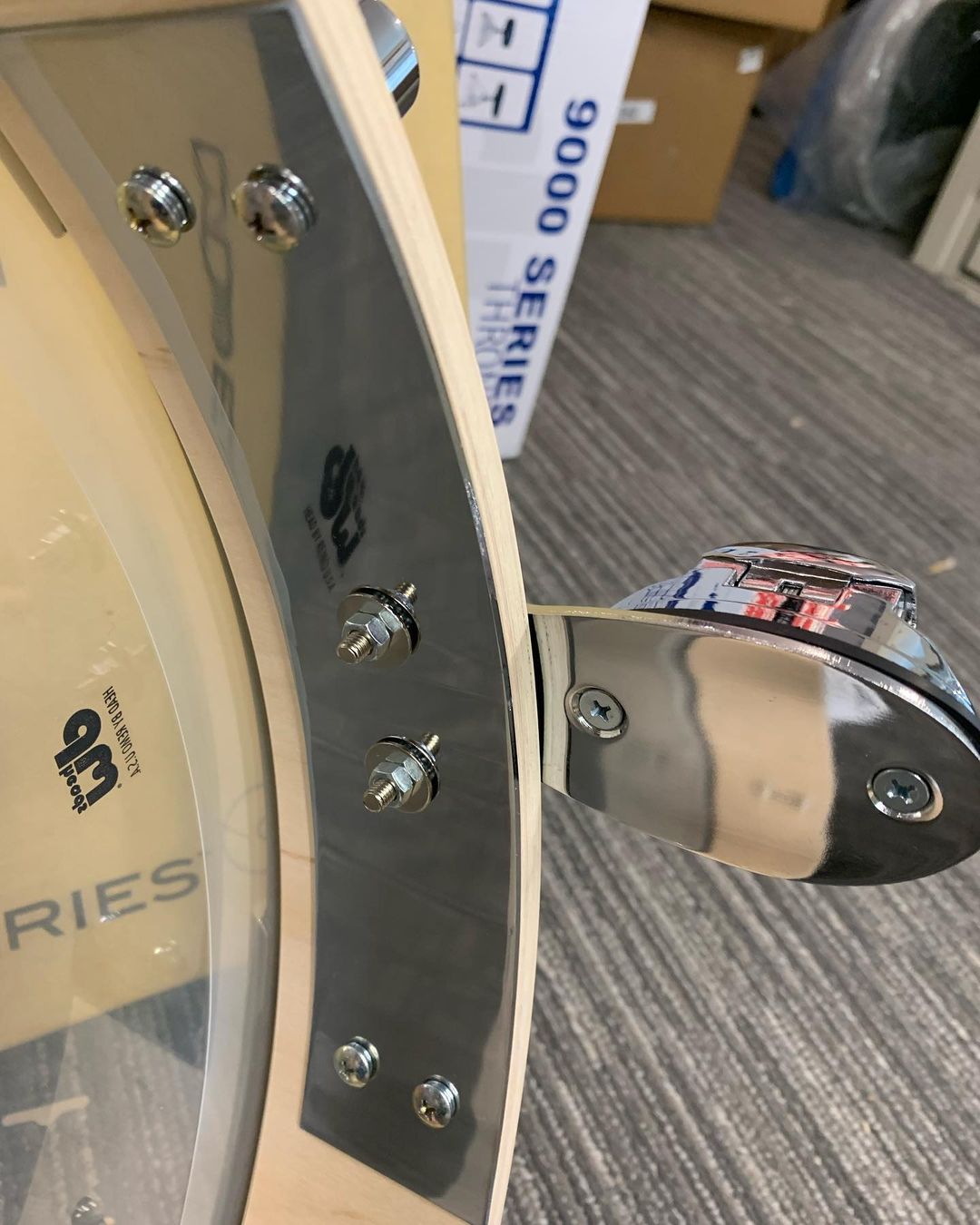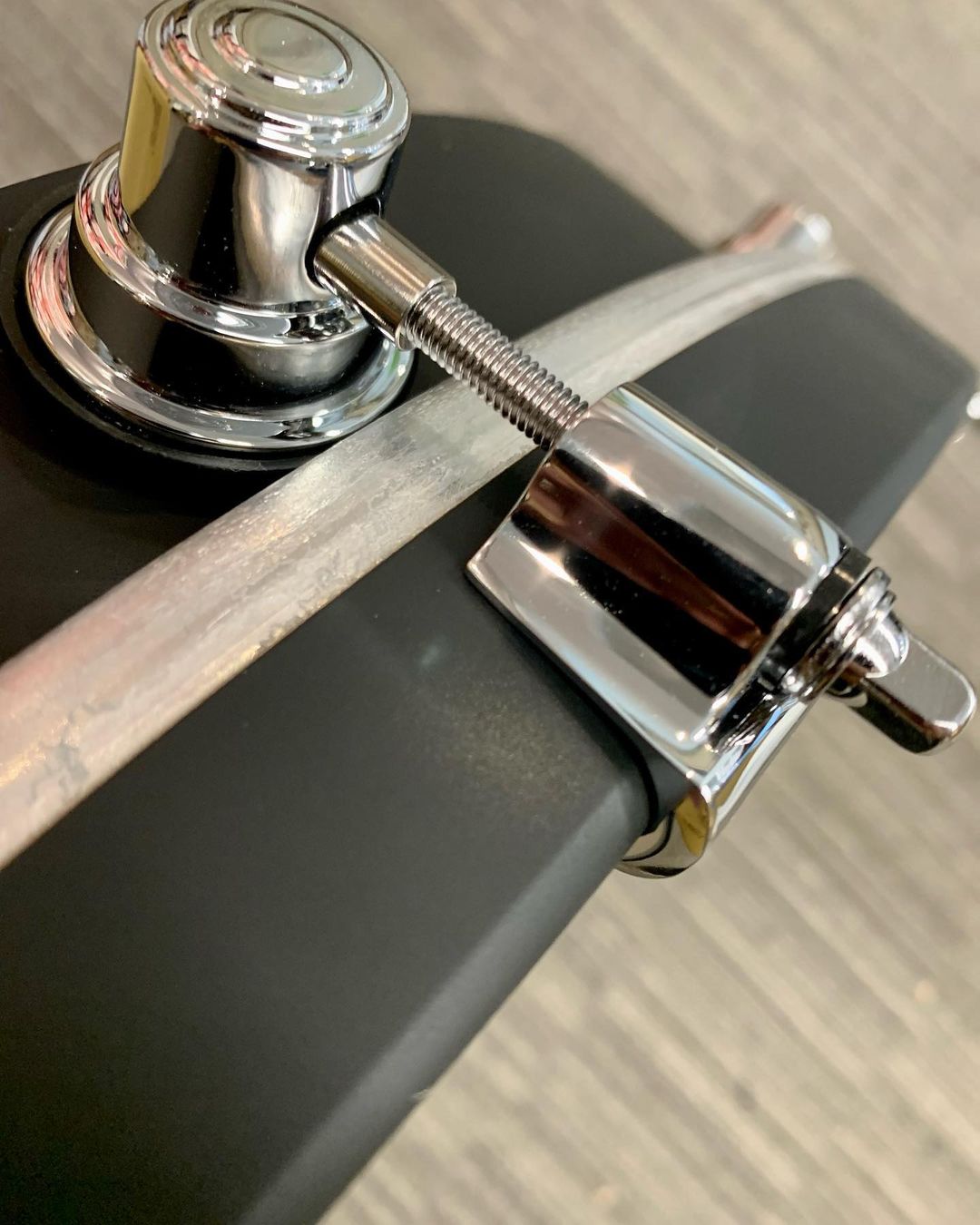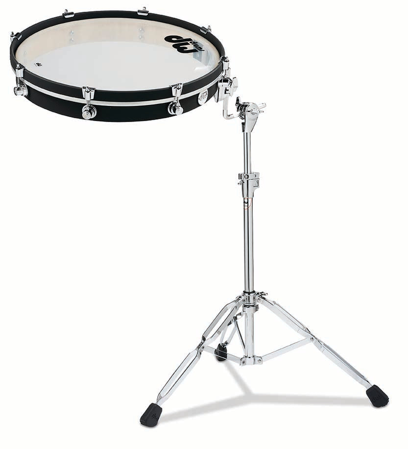 BANG A GONG: A DESIGN SERIES "PANCAKE" GONG DRUM, TO BE EXACT. Crafted from North American Maple and finished in neutral Flat Black, the all-new "Pancake" Gong Drum was created with the help of Italian drummer Marco Iannetta to mimic the sound characteristics of full-sized gong drums, yet they can pack up in seconds. Mounted from a single TB12 tom bracket and fitted with signature Design Series mini lugs, this single-headed, 20" diameter (2.5" depth) drum packs plenty of punch and can integrate into the tightest set-ups. 3991 Tom/Accessory Stand sold separately.