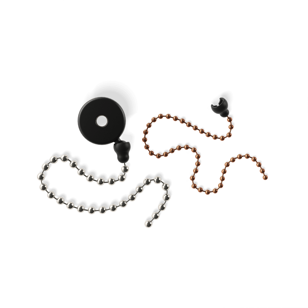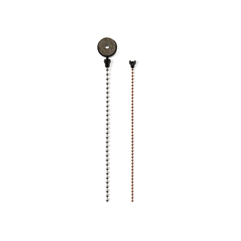 - With the cymbal mounted onto the stand, place the Cymbal Sizzler felt washer side down and fasten the wing nut. Snap your preferred ball chain to the nylon hub. Gently pull on the chain to remove. No need to remove the cymbal wing nut.