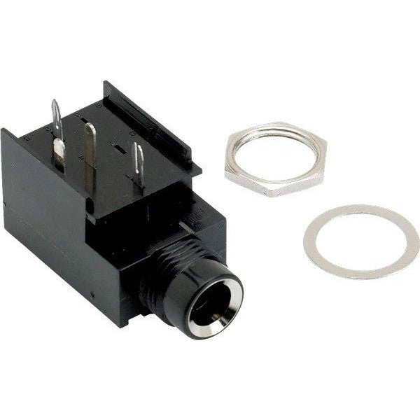 Direct replacement 4-pin mono amplifier jack. Includes lock nut and washer.