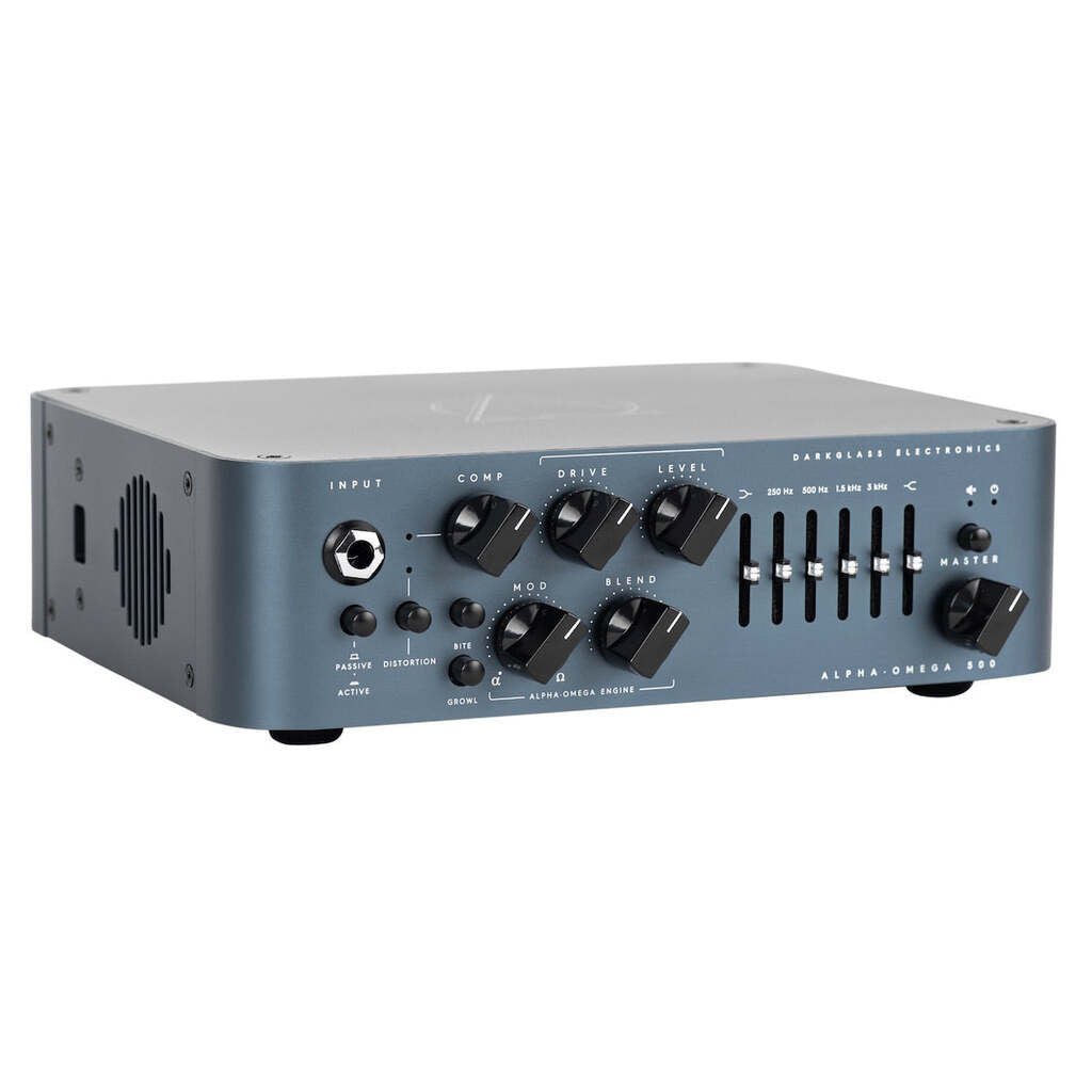 The Alpha·Omega 500 is a 500W amplifier equipped with an all-analog preamplifier, two distinct distortion circuits (Alpha and Omega), a custom-designed Darkglass high-efficiency class D Module, an ultra-quiet graphic equalizer, and a digital impulse-response cabinet emulator for DI outputs or headphones.
