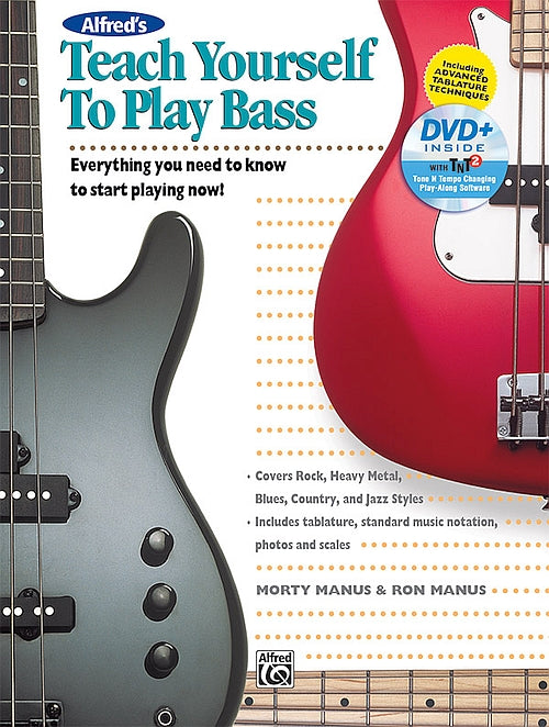 Learn to play bass and open up a brand new world of musical knowledge with this exciting method from Alfred Music. Beginners of all ages can start their journey to a lifetime of musical enjoyment. Beginning with the fundamentals, you will learn about buying a bass guitar, tuning and holding it, fingering and picking styles, and getting acquainted with standard musical notation and tablature. You will then move right along to playing different notes, scales, and bass lines, lesson by lesson, all while continuing to increase your knowledge of reading and understanding standard musical notation and TAB. You will learn to play in an array of musical styles, including rock, Heavy Metal, Blues, country, and jazz. Near the end of the book you will be introduced to the concept of playing from chord sheets, which will assist you in coloring your and others' musical creations with your own unique, rockin' style. Upon completion of this book, you will be able to play from popular bass TAB folios and be ready to play in a band. The book features the following resources for reference during and after your lessons: * TAB licks and bass lines * Bass fingerboard chart * Complete chord chart * Photos showing hand positions and more The accompanying DVD features educator Jared Meeker teaching every lesson and performing all the songs. The DVD also includes TNT 2 software that lets you customize audio tracks for practice. Use it to slow down tracks, isolate and loop parts, and change tempos and keys. You may also stream the video and download the TNT 2 software from a browser. Be your own teacher, and let Alfred Music be your resource every step of the way.
