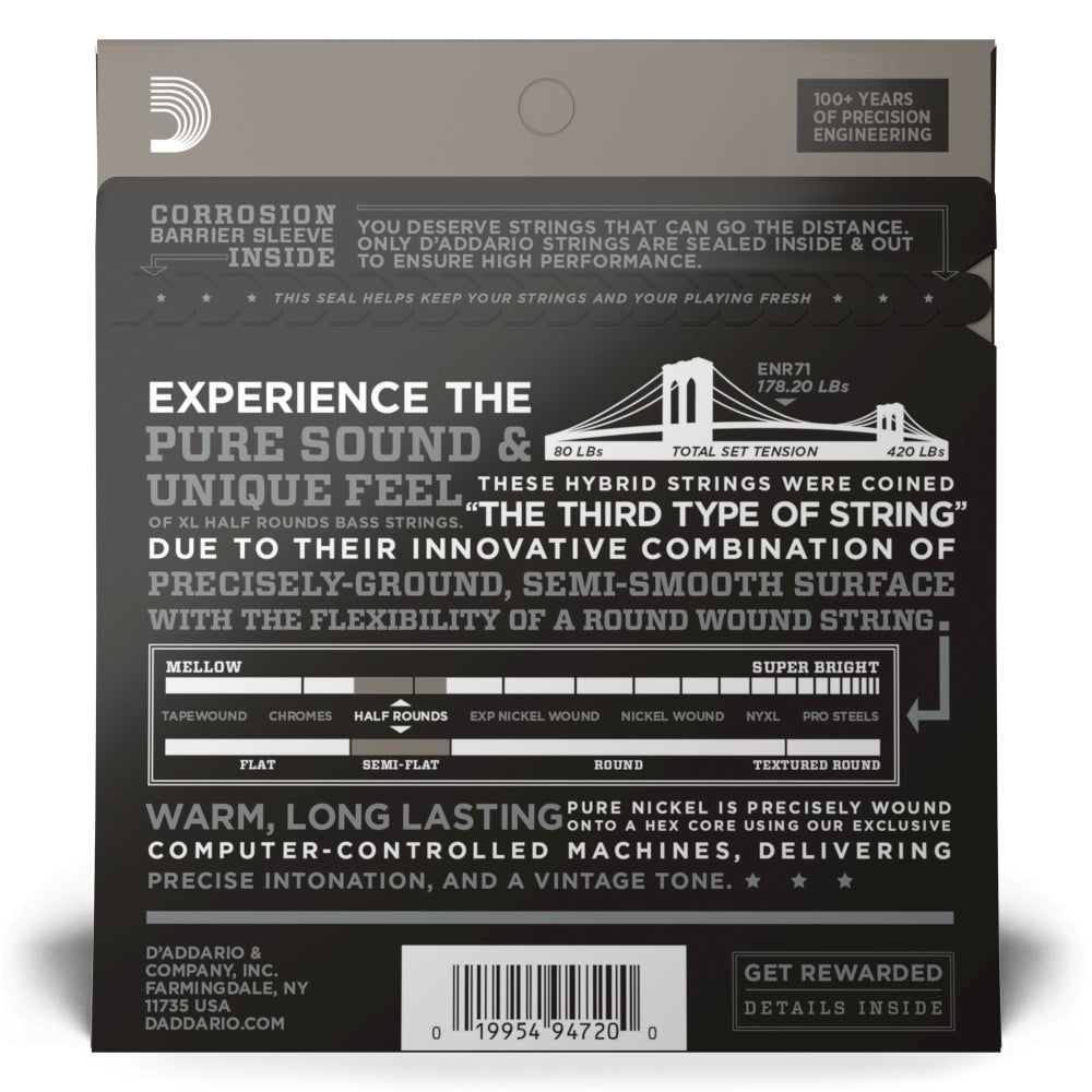 D'Addario - ENR71 Half Round Bass Guitar Strings, Regular Light, 45-100, Long Scale