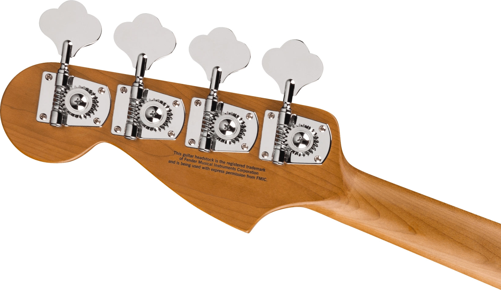 This 4-string bass is presented in a Natural Mahogany and Satin Ferrari Red finishes with chrome hardware, cream pickup covers and licensed Fender® Precision Bass® headstock shape.