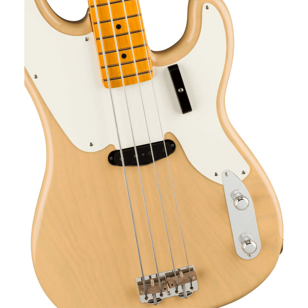 Other key features include a substantial ‘54 “C”-shape maple neck with a 7.25” radius fingerboard and vintage tall frets. The Pure Vintage 2-saddle bridge with fiber saddles, reverse open-gear tuners, finger rest and '54 Single-Coil Precision Bass® pickup deliver classic Fender thump and style.