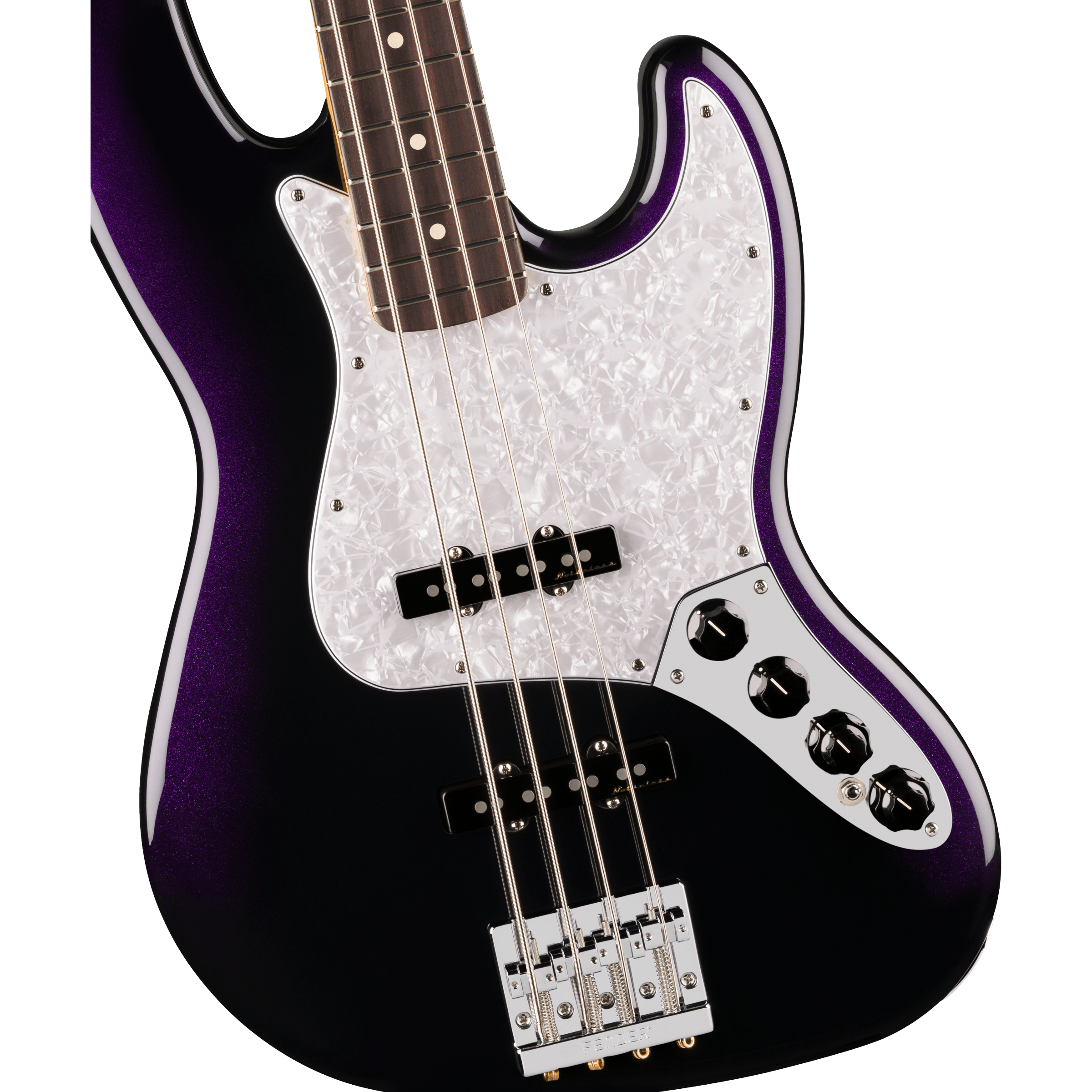 The Player II Modified Active Jazz Bass® is a classic bass with the modern player in mind. Everything about the neck is designed for fast and fluid playability, from the Modern “C”-profile with silky satin urethane finish on the back to the comfy 9.5”-radius slab rosewood or 1-piece maple fingerboard with smooth rolled edges and 20 medium jumbo frets. The alder body provides classic Fender punch and is available in a variety of exciting new finishes. The Player II noiseless™ pickups deliver classic Jazz Bass® growl while eliminating unwanted noise while the all-new active preamp with active/passive tone control and EQ section gives players the perfect tool to dial in their favorite tones. The 4-saddle HiMass™ bridge, tapered-shaft tuners and TUSQ® nut all combine to keep tuning incredibly stable for even the most demanding performances.