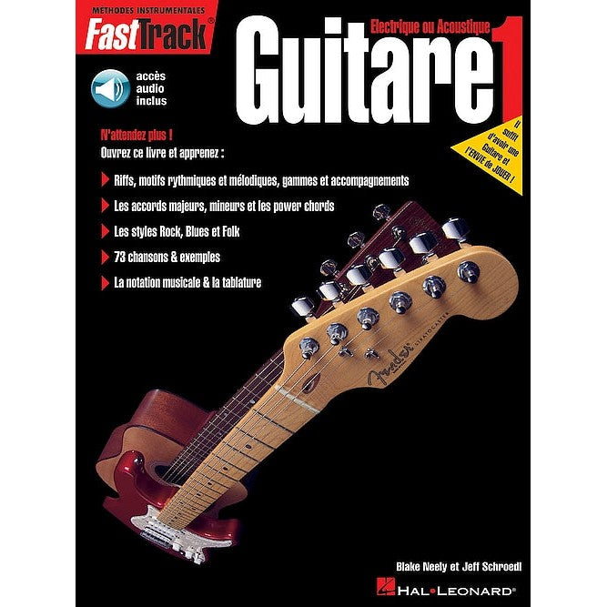 Series: Fast Track Music Instruction Format: Softcover Audio Online - TAB Authors: Blake Neely, Jeff Schroedl For electric or acoustic guitar - or both! Teaches music notation, tablature, Full chords and power chords, riffs, licks, and scales, and rock and blues styles. Method Book 1 includes 73 songs and examples.