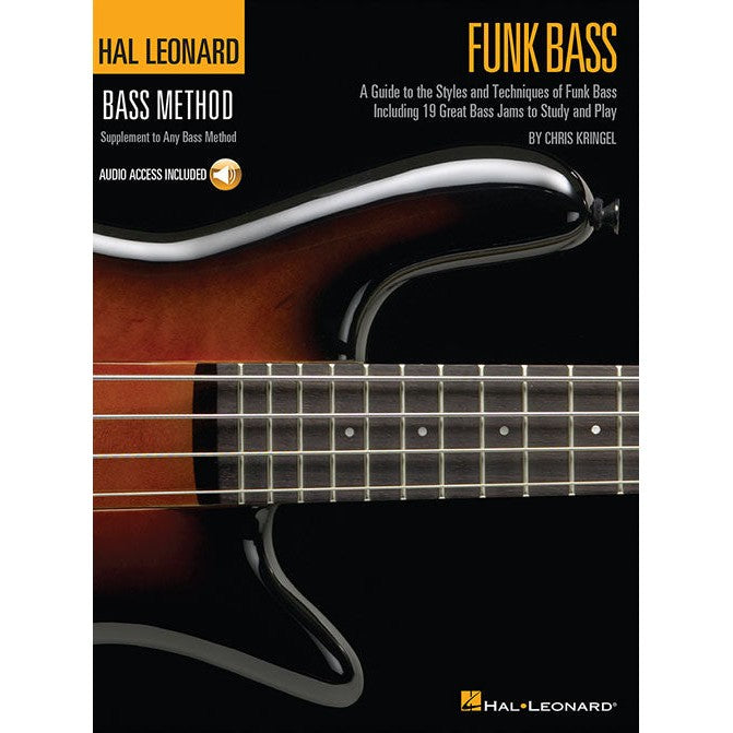 The Hal Leonard Funk Bass Method is your complete guide to learning funk bass. It uses real funk songs to teach you the basics of grooving and soloing funk bass in the style of Flea, Victor Wooten, Marcus Miller, Rocco Prestia, and many others. Songs include: Brick House • Can't Stop • Fire • Higher Ground • I'll Take You There • Let's Groove • Pick up the Pieces • Stay • Sumthin', Sumthin' • What Is Hip • and more.