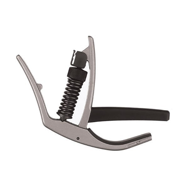 The Artist Capo utilizes a patented tri-action geometry reducing the force required to open and close the capo while applying even tension regardless of neck profile. Combined with the micrometer tension adjustment and direct horizontal pressure, the NS Artist Capo virtually eliminates pulling the strings side to side and the need to retune during use. Additionally, the trigger-style design and lightweight aluminum construction adds no obstruction or noticeable weight to the neck of the instrument. The NS Artist Capo includes an NS Mini/Micro Tuner mounting bracket, allowing you to add tuning capabilities to the capo. Tuner sold separately. Available in a variety of colors. D'Addario promises to be the most innovative professional musician’s tools available. Our diverse capo line is no exception. Many of our groundbreaking models are the result of a productive joint effort between famed designer Ned Steinberger and Jim D’Addario. No matter what style of capo you prefer, D'Addario has the capo for you