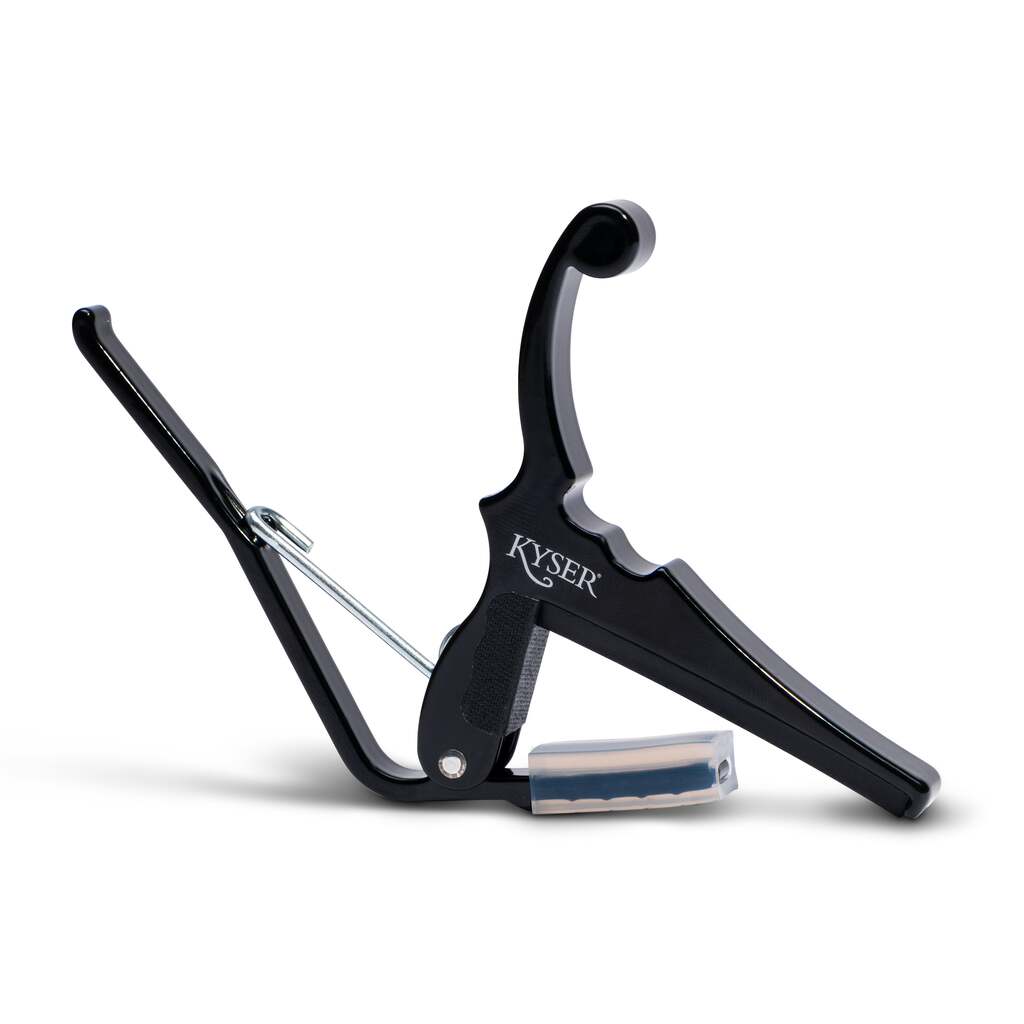 The Kyser Quick-Change Electric 6-string capo is the perfect little capo for electric guitars. It can be repositioned with just one hand, and it can be moved without altering your guitar's tuning.