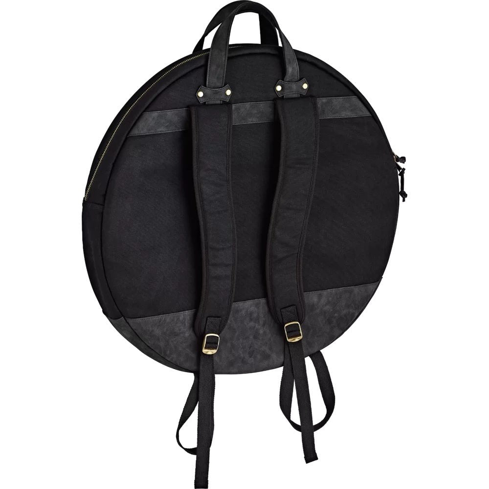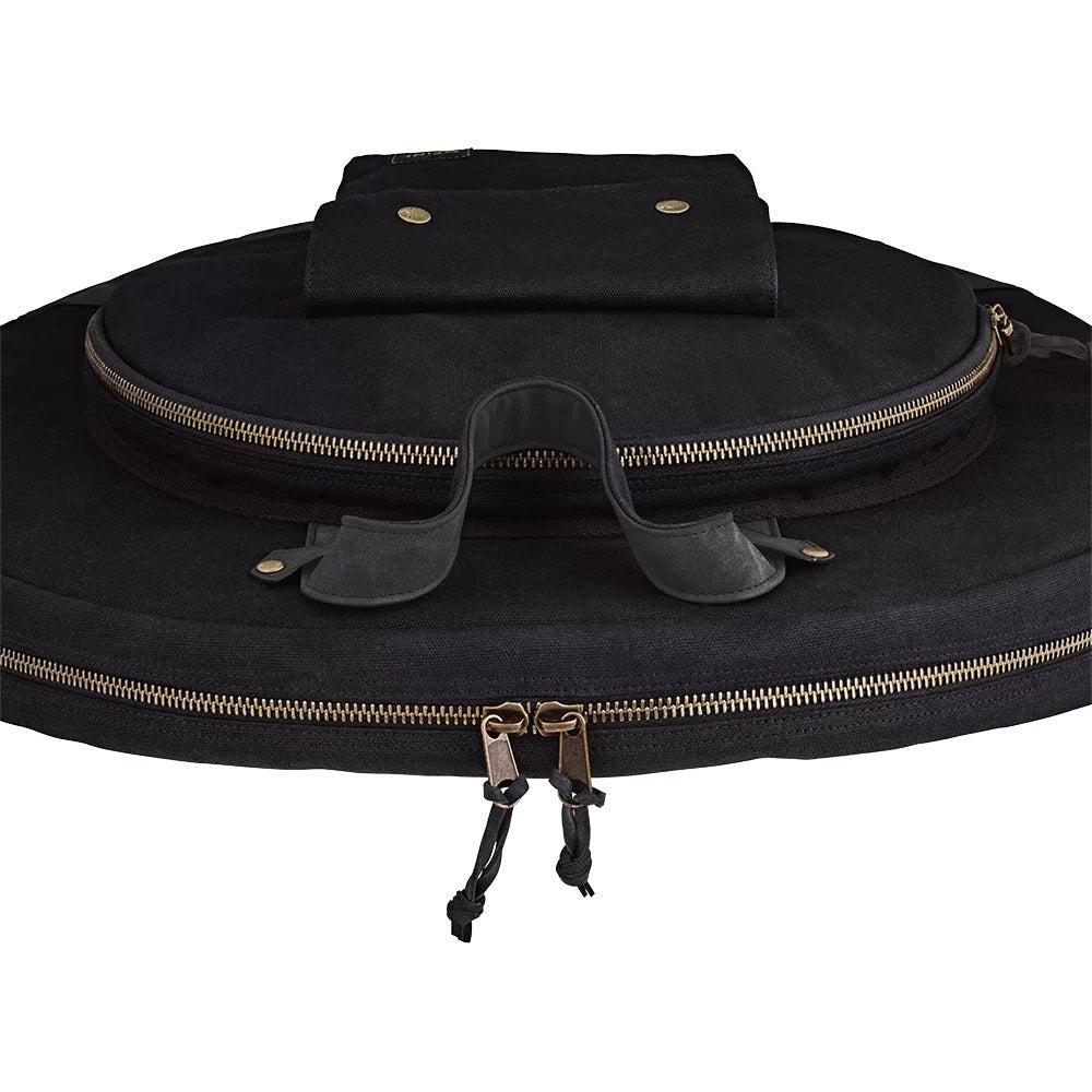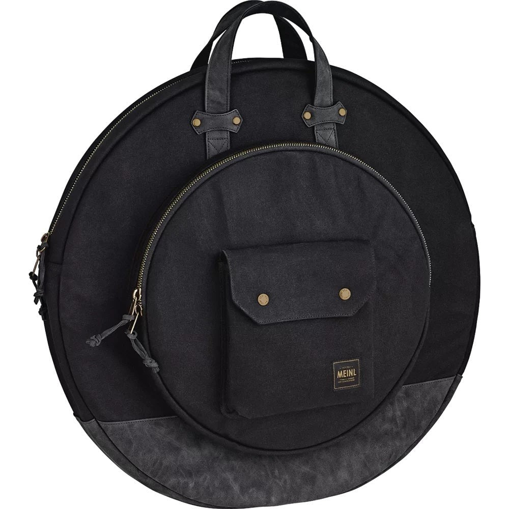 The Meinl Waxed Canvas Collection Cymbal Bag has all the tough usability of a touring bag with classic good looks. Our ultra-durable, heavyweight 24-ounce cotton canvas fabric exterior is finished with an anti-abrasion, water resistant wax coating to maintain a lifetime of use while aging beautifully. Inside the main compartment is plenty of room to fit 22” cymbals, and it comes with two canvas cymbal dividers to avoid metal-on-metal contact. The 15” hihat compartment includes one canvas divider. For quick access storage, the exterior pocket is sized for common accessories or tools, and it snaps shut to secure your items. Two adjustable backpack straps and a reinforced leatherette handle let you comfortably transport heavy loads to the gig or studio. On the bottom of the bag is a layer of heavy-duty leatherette that can support extra cymbal weight while guarding against bumps, scuffs and minor drops. Getting into the bag is easy with the large zipper pull tabs that come with long leatherette draws. The Meinl Waxed Canvas Collection Bags are designed for an understated and timeless style while being as practical as ever for any type of traveling drummer.
