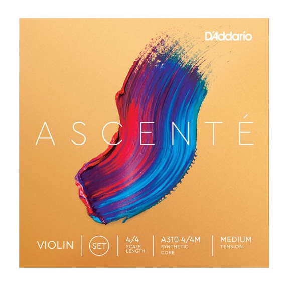 D'Addario - A310 4/4M Ascenté Violin String Set- 4/4 Scale- Medium Tension