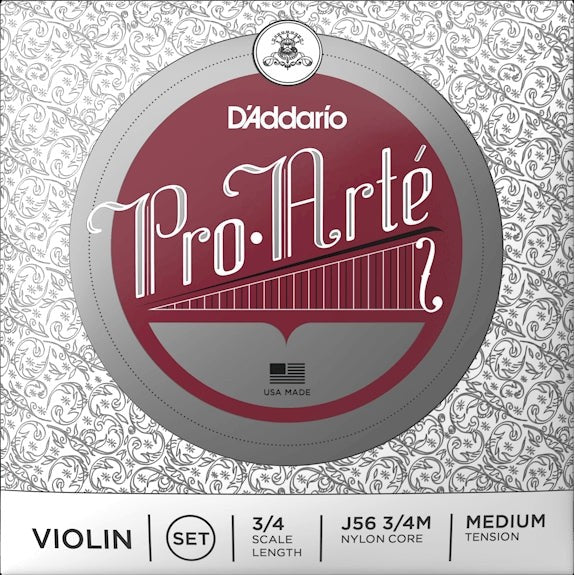 D'Addario - J56 3/4M Pro-Arte Violin String Set 3/4 Scale Medium Tension