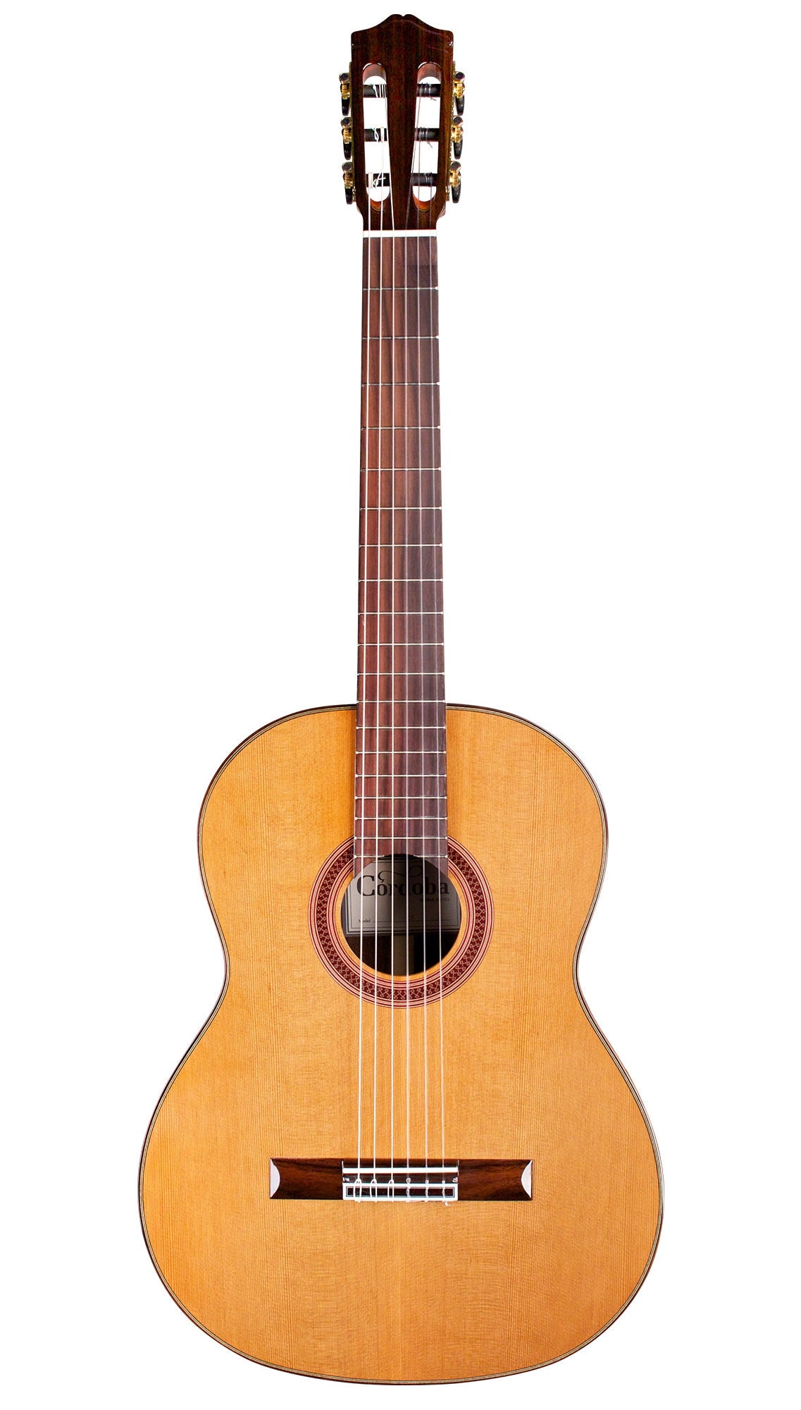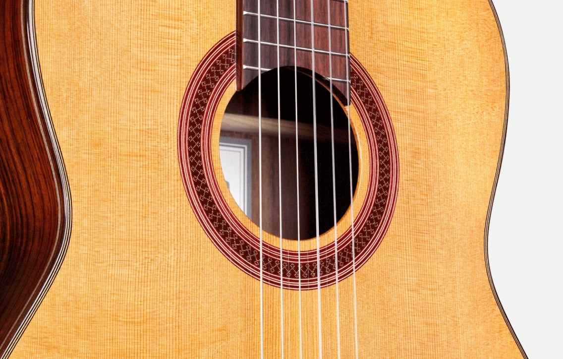 The C7 is a wonderful choice for beginner or intermediate guitarists. A step up from our C5, the C7 offers rosewood back and sides with the choice of a solid cedar top to achieve a warm classic nylon string sound, or a solid European spruce top for a brighter tone. The C7's traditional fan bracing allows for maximum resonance and sustain and premium features such as a hand-inlaid wooden rosette, two-way adjustable truss rod, and a sleek high gloss PU finish.