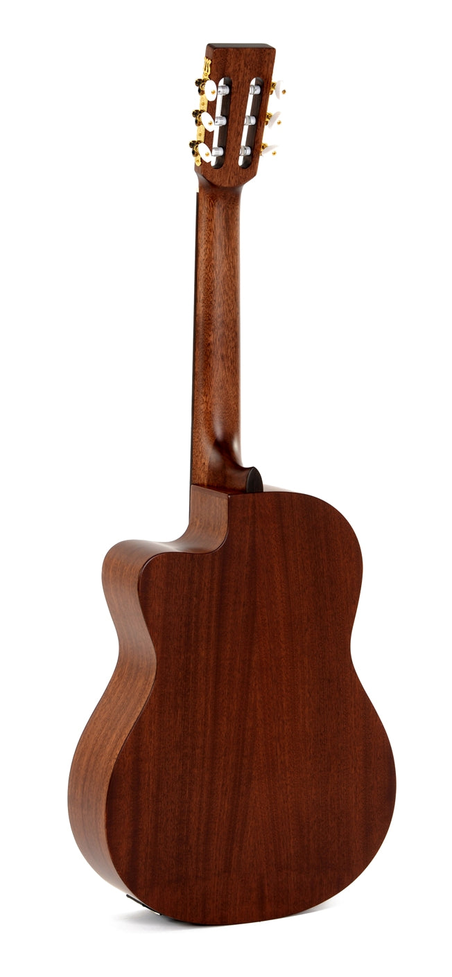 The Sigma CMC-STE+ Electro Classical Guitar, Natural offers a solid top along with a mahogany body, combined with a comfortable cutaway profile and on-board Fishman electronics with tuner, perfect for live and studio environments. With its solid cedar top and mahogany body the CMC-STE+ produces a full, warm, yet delicate tone, perfect for those with a lighter touch. In addition, the CMC-STE+ also has a real bone nut which enhances the guitar's overall sound with added resonance and sustain. The overall tone produced falls on the warmer end of the tonal spectrum with a sweet, complex tonality that is perfectly-suited to Flamenco and Classical playing styles. Specifically, the fingerpicking player is certain to adore the solid cedar top and the response it projects. Furthermore, the Sigma Electro Classical Guitar also has a traditional classical body that provides a comfortable playing experience whilst its venetian cutaway profile provides added comfort and easy access to upper frets. Lastly, the Sigma CMC-STE+ comes equipped with a Fishman Isys+ preamp and a built-in tuner that offers basic tone tweaking controls for optional amplified performance.
