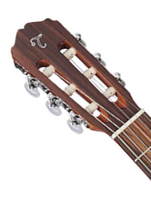 The GC1 is an attractive classical acoustic guitar that's built to deliver beautiful nylon-string sound. An excellent choice for any player seeking an affordable classical guitar that performs well above its price tag, the GC1 features a fan-braced select spruce top and mahogany back and sides for a full and balanced sound. The comfortable mahogany neck and laurel fingerboard provide great feel and playability. Other great features include a dovetail neck joint, beautiful inlaid mosaic rosette, synthetic bone nut and bridge saddle, chrome tuners with white pearl buttons and an elegant gloss finish.