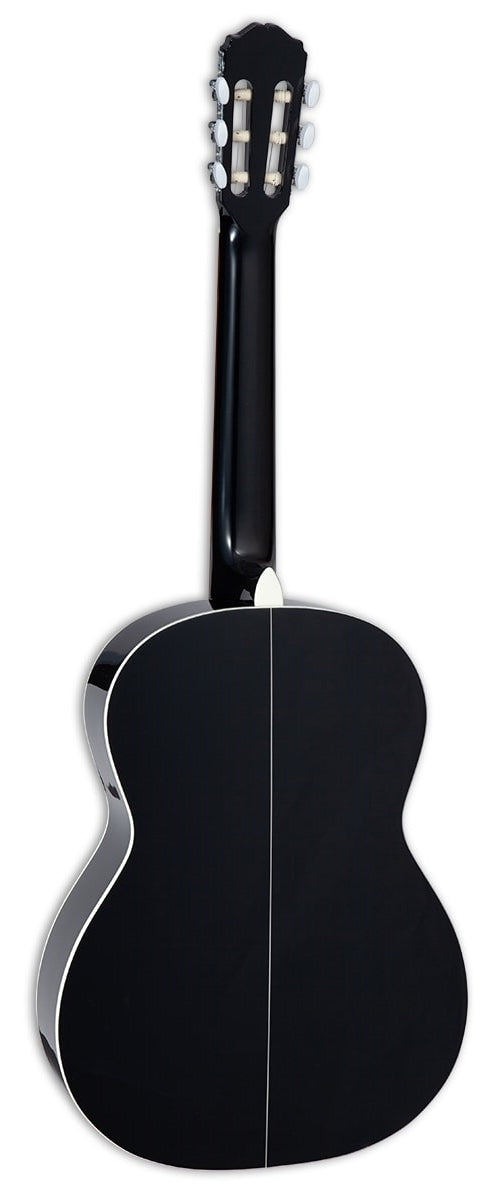 The GC2 is an attractive classical acoustic guitar that's built to deliver beautiful nylon-string sound. An excellent choice for any player seeking an affordable classical guitar that performs well above its price tag, the GC2 features a fan-braced select spruce top and sapele back and sides for a full and balanced sound. The comfortable mahogany neck and laurel fingerboard provide great feel and playability. Other great features include a dovetail neck joint, beautiful rosette, synthetic bone nut and bridge saddle, chrome tuners with white pearl buttons and an elegant gloss black finish.