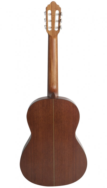 Select sitka spruce top and bound nato back and sides coupled with a mahogany neck. A GraphTech Nu-bone XB bridge saddle and USA strings delivers rich tone with a lively presence. Traditional gold machine heads (with pearloid-button tuners), and a beautiful ABS center back strip round out the traditional look of the Valencia Series 400 range. The transparent, satin finish and tasteful appointments highlight the Series 400 understated good looks. • Size: 4/4 • Top: Sitka Spruce • Back & Sides: Nato • Top Binding:ABS - 5 Ply Black/White • Side Binding:ABS - Black • Back Center Strip:ABS - 5 Ply Black/White • Neck:Mahogany • Neck Binding:ABS - Black • Neck Side Dots:Yes • Fret Wire:19 Frets; Nickel • Bridge Saddle:NuBone XB; Canada • Rosette Decoration:Historic Valencia • Machine Heads:Traditional - Gold Plated with Pearloid Buttons • Strings:USA • Scale:4/4 = 650mm (25 5/8”) • Nut Width:4/4 = 52mm (2 1/16”)