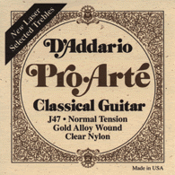 Pro-Arte strings are our the world's best selling and D'Addario's premium classical guitar strings. All Pro-Arte treble strings are sorted by a sophisticated computer-controlled laser machine which performs diameter/tension measurements and quality checks, insuring true sounding, precise trebles in every set. Pro-Arte basses are wound using silverplated copper on a multi-filament nylon core.