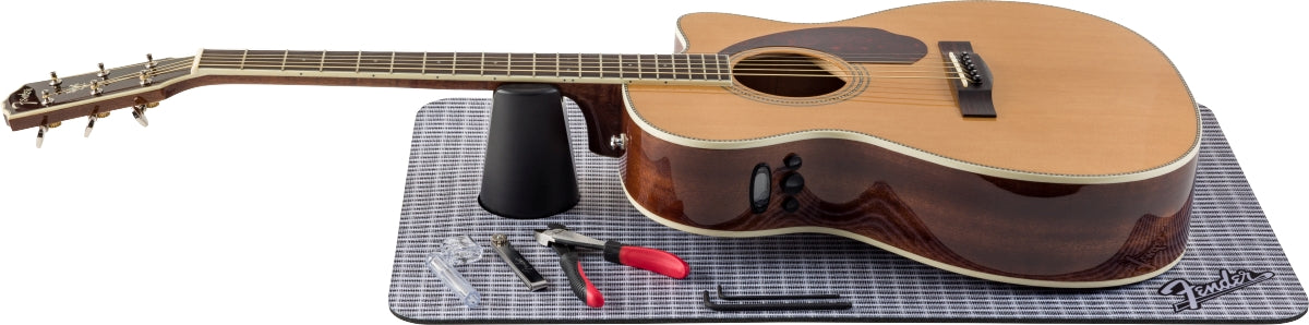 Repair and restore your instrument like a professional. The Fender® Work Mat features a finish-safe neoprene pad and textured anti-slip bottom grip for ultimate durability. The included padded neck cradle holds your guitar at the proper angle for maintenance and adjustment. Crafted from durable EVA foam, the mat rolls up for quick and easy storage or on-the-go routine repairs. Elevate your work bench with the unmistakable look of Fender’s iconic designs – tweed and amp grill cloth.