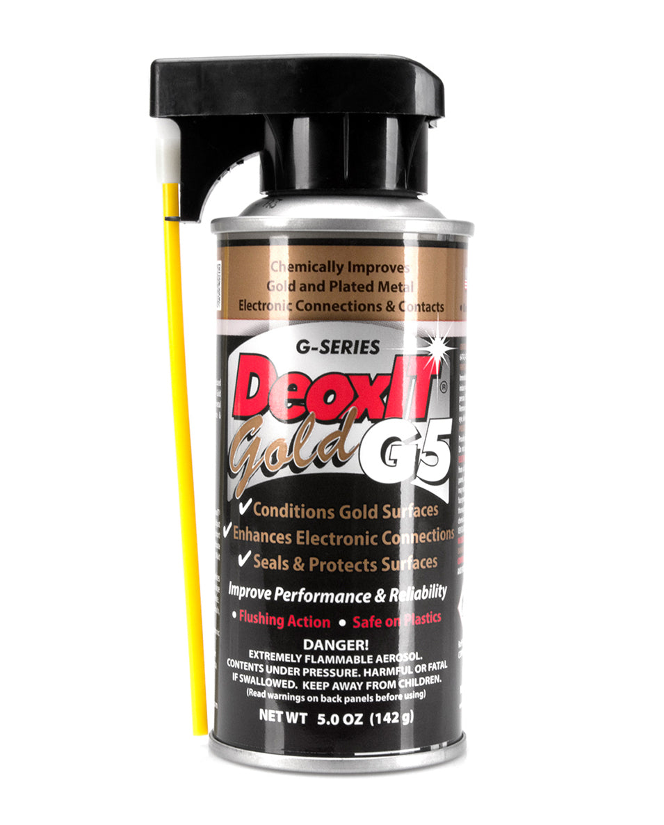 DeoxIT® GOLD (formerly ProGold) is a unique conditioning solution designed for use in critical applications where only slight cleaning action is necessary. It is intended for use on new and recently cleaned surfaces only. • Enhances, protects, lubricates, and maintains optimum signal quality • Reduces intermittent connections, arcing, and RFI as well as wear and abrasion • Provides long-lasting protection from oxidation on plated surfaces