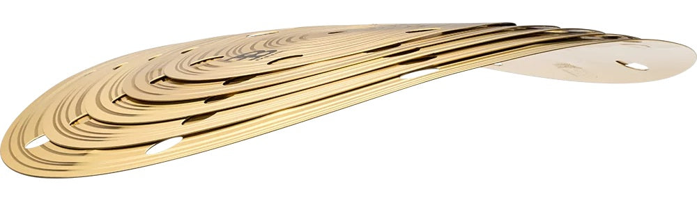 The 5-piece HCS 8/10/12/14/16 Smack Stack features five discs shaped to create a distinctive sound effect. The stack can be manipulated by adjusting the tension of the cymbal stand’s wing nut. Increased tension produces a crisp attack and short decay ideal for quick accents, while a looser setting yields a longer sustain. Works well when paired with a snare drum for enhanced back beats, or as an alternative to your snare altogether. Use all five discs for a fuller sound and increased projection, or mix and match a few sizes to find the sound that suits you best. The discs are sized 8”, 10”, 12”, 14” and 16”.