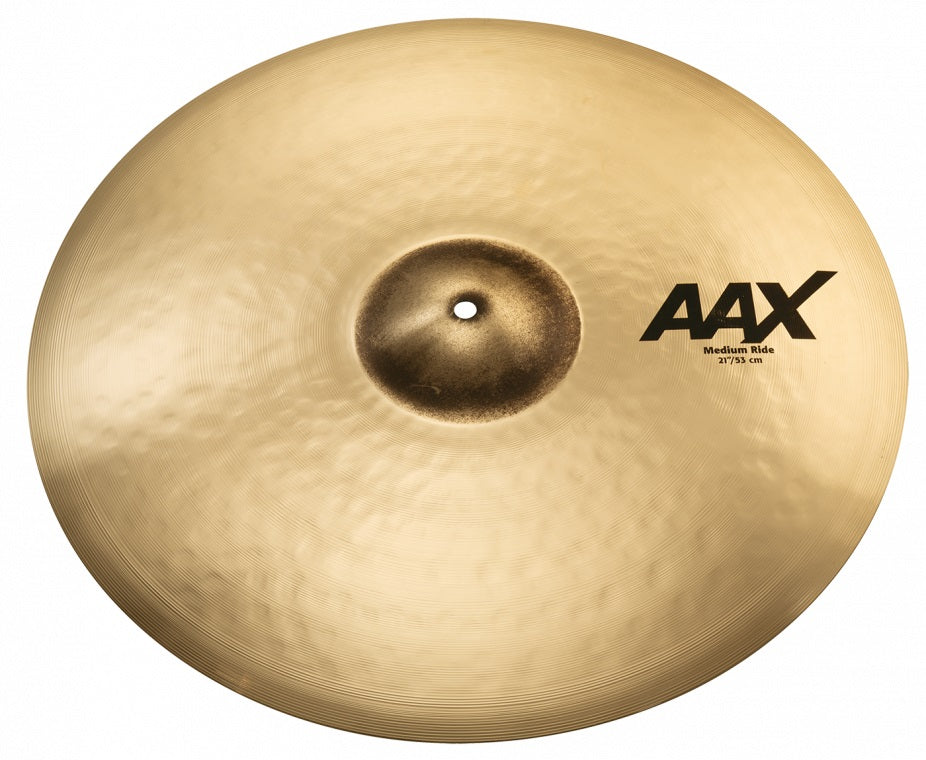 The 21″ AAX Medium Ride from SABIAN introduces a whole new palette of sound to the AAX line. A smaller, raw bell equals increased crash-ability. A whole new style of hammering − much more visible on the surface of the cymbal due to the larger, rounder peen − makes for a weight that trends thinner, with added darkness and complexity. At the same time, more highs are introduced into the sound, resulting in a wider band of frequency. For drummers, that means brighter highs and more complex lows. SABIAN has always pushed the boundaries of innovation, using the latest manufacturing technology to answer new trends in music and sound. AAX Medium Rides are no exception, answering the call for crash-able, complex Rides with added versatility.