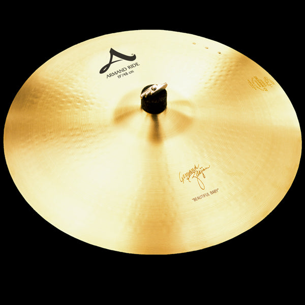 Bright and musical "vintage" A Sound. Armand Zildjian's favorite ride sound, features three rivet cluster and laser engraved Armand Zildjian Signature with his favorite expression, "Beautiful, Baby".