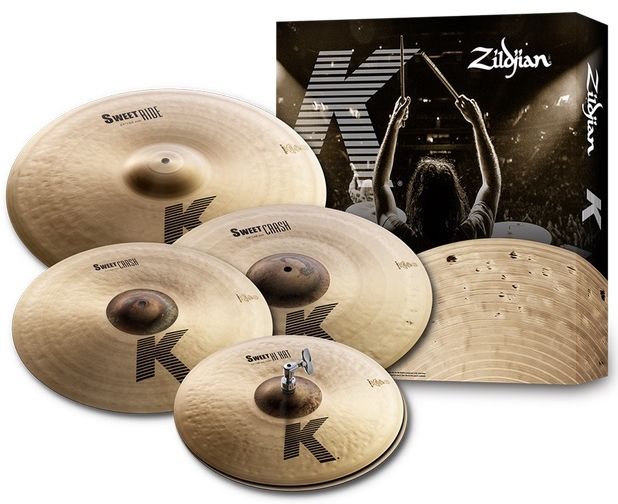 In response to customer demand, the new K Sweet Cymbal Pack offers a full setup of cymbals from the popular K Sweet line. This pack includes larger, darker crashes, and pushes the iconic Zildjian K sound in a new, alternative direction. Featuring some of our favorite K Sweet models, this K Sweet Cymbal Pack extends the rich sounds of the K Zildjian Series in a sweet and responsive new direction that’s great for all types of music. Over sized 15” HiHats feature a thin top and an extra heavy bottom, creating a great wash without sacrificing a satisfying and solid “chick”. The 17” and 19” crashes are extra thin in weight for a fast response, and their unlathed bells create nicely balanced high frequencies. The medium weight 21” ride is crashable, with great stick definition and a clear bell tone. Complete K Sweet setup Oversized hihats create great wash Odd-size crashes are lower pitched and slightly darker 21" Sweet Ride is just thin enough to be crashable