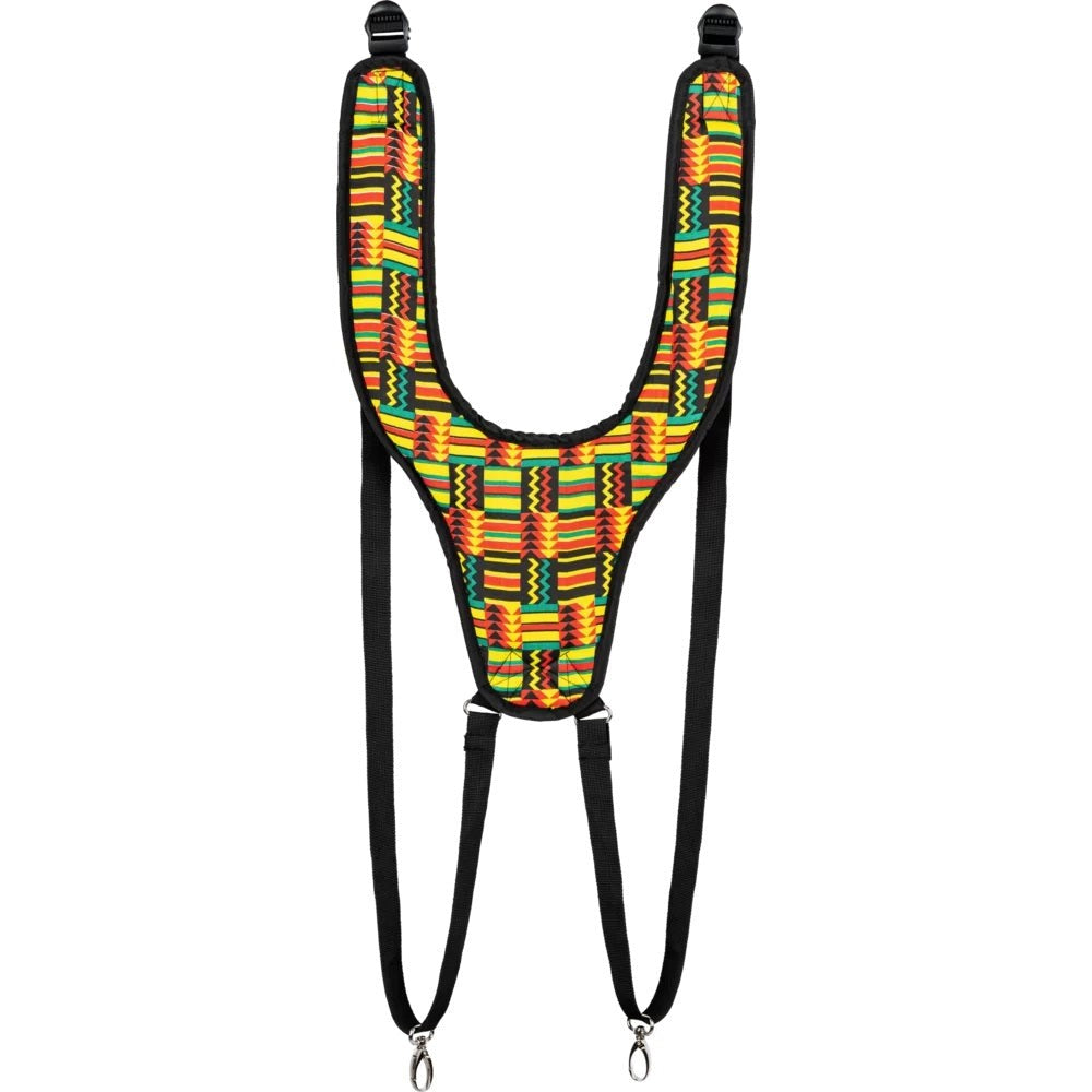 For mobile djembe players, standing and moving while performing requires a strong strap to keep your drum comfortably in place. The Meinl Percussion Designer Djembe Strap is made with heavy-duty synthetic material that holds your djembe securely in playing position, leaving you free to move around. Length adjustable thick, webbed PP straps allow you to find the perfect fit for you. Features Simbra design.