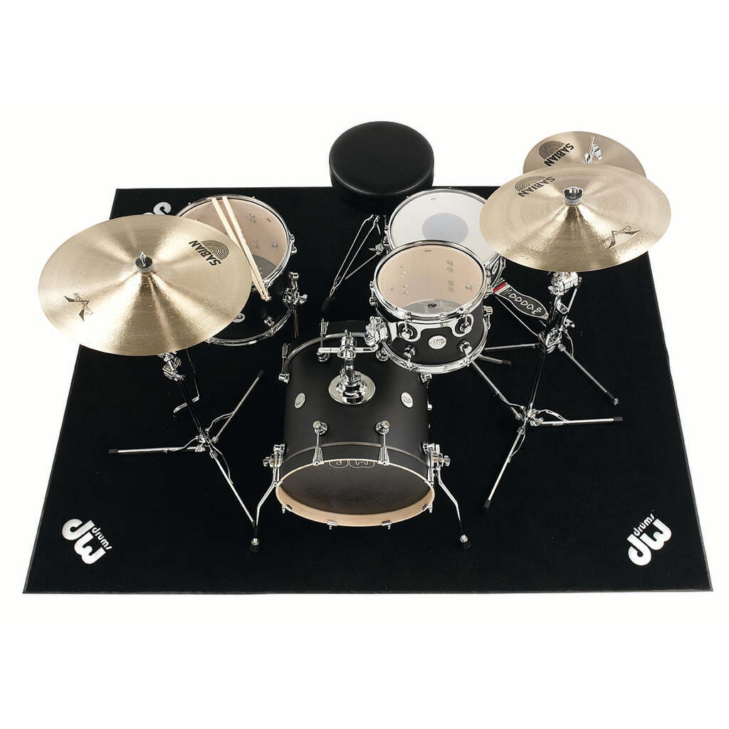 The 62x78-inch DW Drum rug is made from black industrial-grade carpet and includes a non-skid rubber underside with silver cut-out DW logos in each corner. Can be used a studio or gig rug and provides excellent traction and isolation.