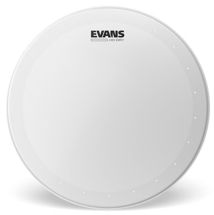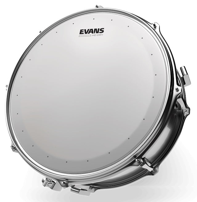 EVANS HD (Heavy Duty) Dry snare heads balance durability and sonic response with advanced overtone control provided by precision-drilled dry vents. HD Dry heads are made with a coated outer ply of 5mil film and an inner ply of 7.5mil film, plus a 2mil control ring on the underside of the head and dry vents around the perimeter to eliminate stray overtones. HD Dry heads have a semi-defined attack, with short sustain and a bit less brightness than standard HD heads. This coated head also features Level 360 Technology.