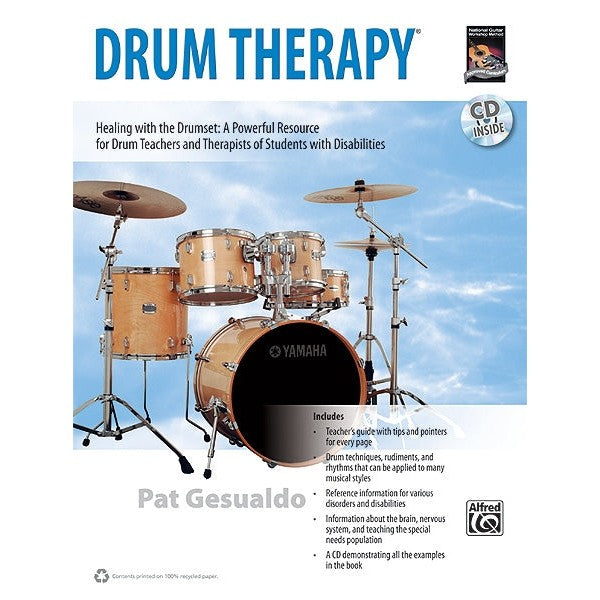 Drum Therapy by Pat Gesualdo is an exciting breakthrough for drum instructors and special needs service providers, helping to teach both mainstream and special needs students the art of drumming. It explores the revolutionary Drum Therapy system that was developed by author Pat Gesualdo and used throughout the world in schools, hospitals, community centers, rehabilitation facilities, day care treatment centers, and mental health centers. This book is a comprehensive resource that contains material for the student/patient and the teacher/therapist. The course covers numerous rhythms in a variety of musical styles, including rock, blues, jazz, and more. A CD is provided to demonstrate all the examples in the book. "This is an interesting book that all music therapists may wish to investigate." - Drummer Magazine