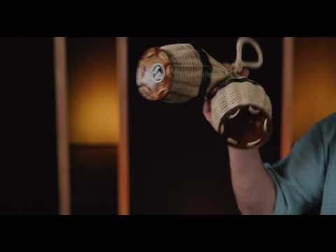 A dual-pod handwoven basket with internal pebbles for crisp dry sound from the coconut bottom.