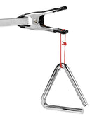 Designed to hold any triangle, the LP Triangle Holder is spring loaded allowing it to clamp onto music stands, cymbal stands and table ledges. It is constructed of heavy-duty steel with vinyl dipped tips for durability and stability while reducing vibration. A nylon cord is included.
